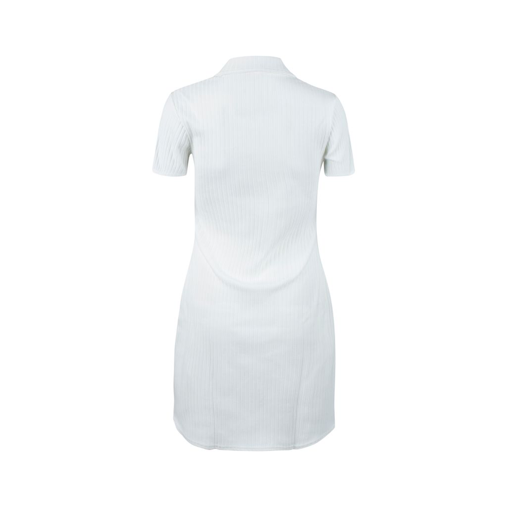Be the cutest in this in this mini coverup zip dress made from stretch ribbed fabric. Featuring a point collar neckline and a front zip-up closure for easy wear. Perfect over a bikini or styled as an outfit. Brand new with tags attached.