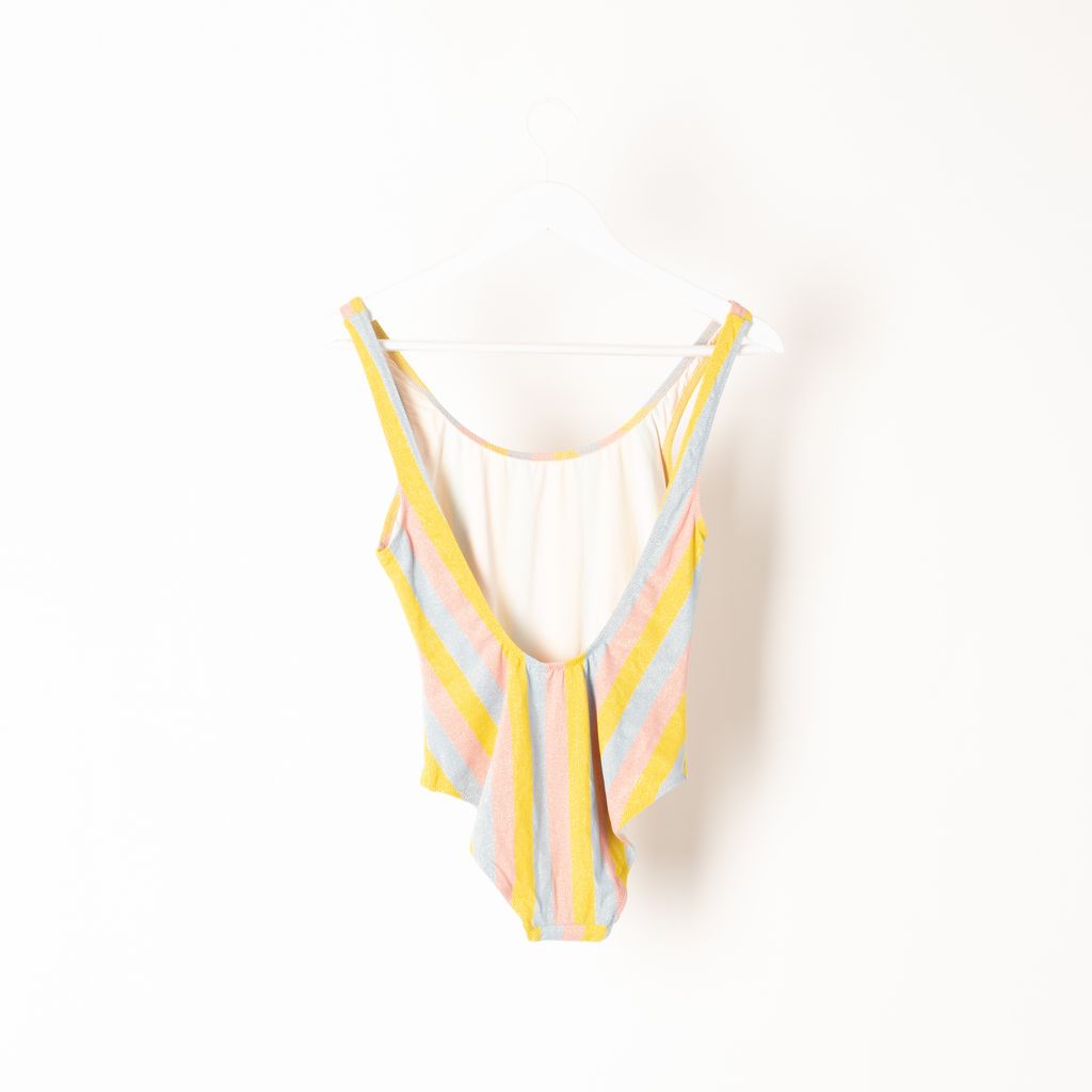 Step into summer in the Anne Marie suit from Solid & Striped. This swimsuit features an all-over stripe print, wide straps, low back, and a high-cut hip. Brand new tags attached.