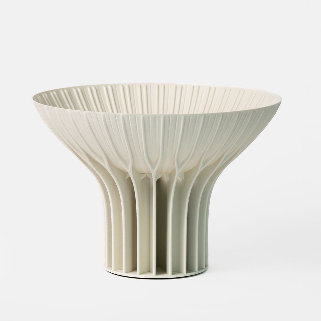 The Solstice fruit bowl is the elevated version of the Radiant bowl. The height adds to the tiny architectural drama and creates a more dynamic tablescape. These raised platforms are designed to allow air to circulate around your fruit to keep it fresh for longer. Celebrate the seasonal harvest with this centrepiece.