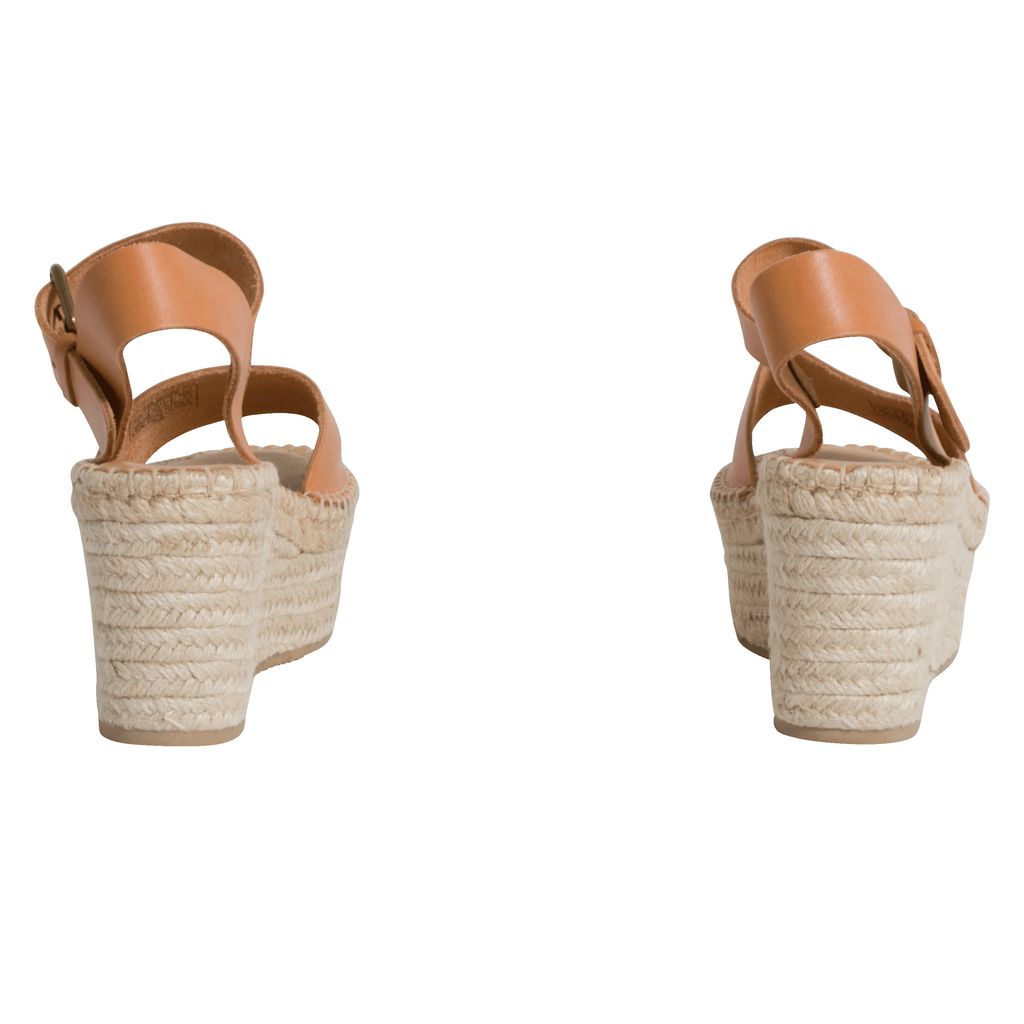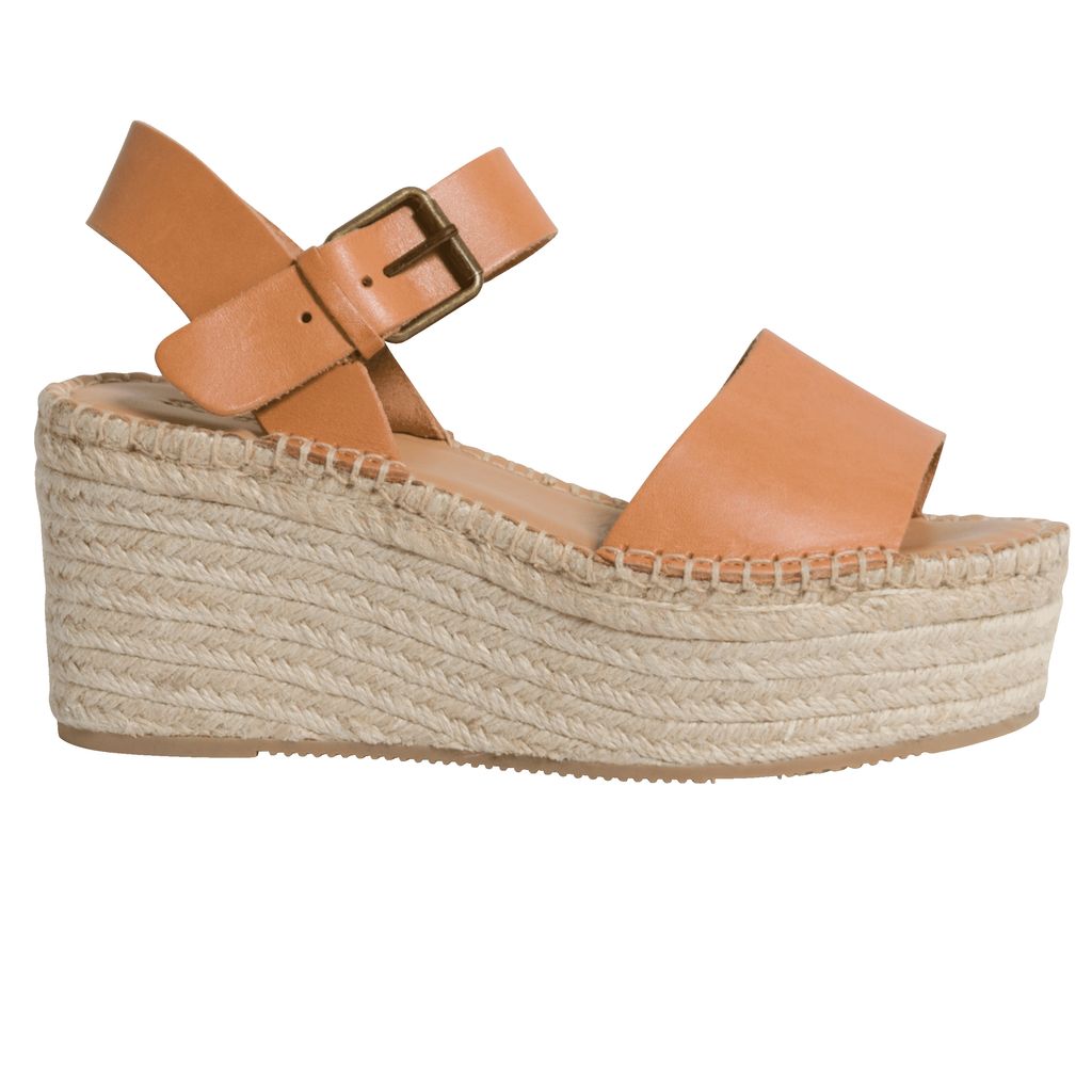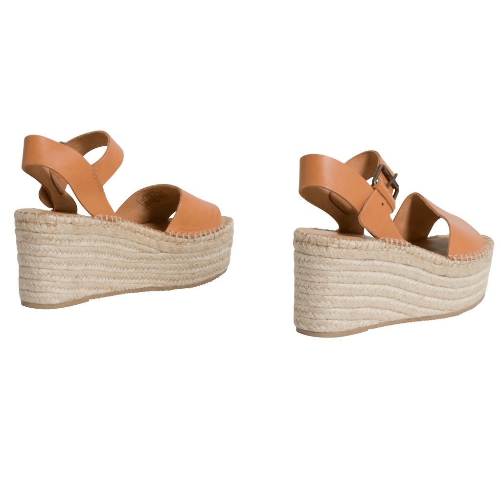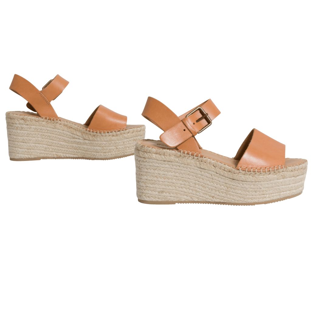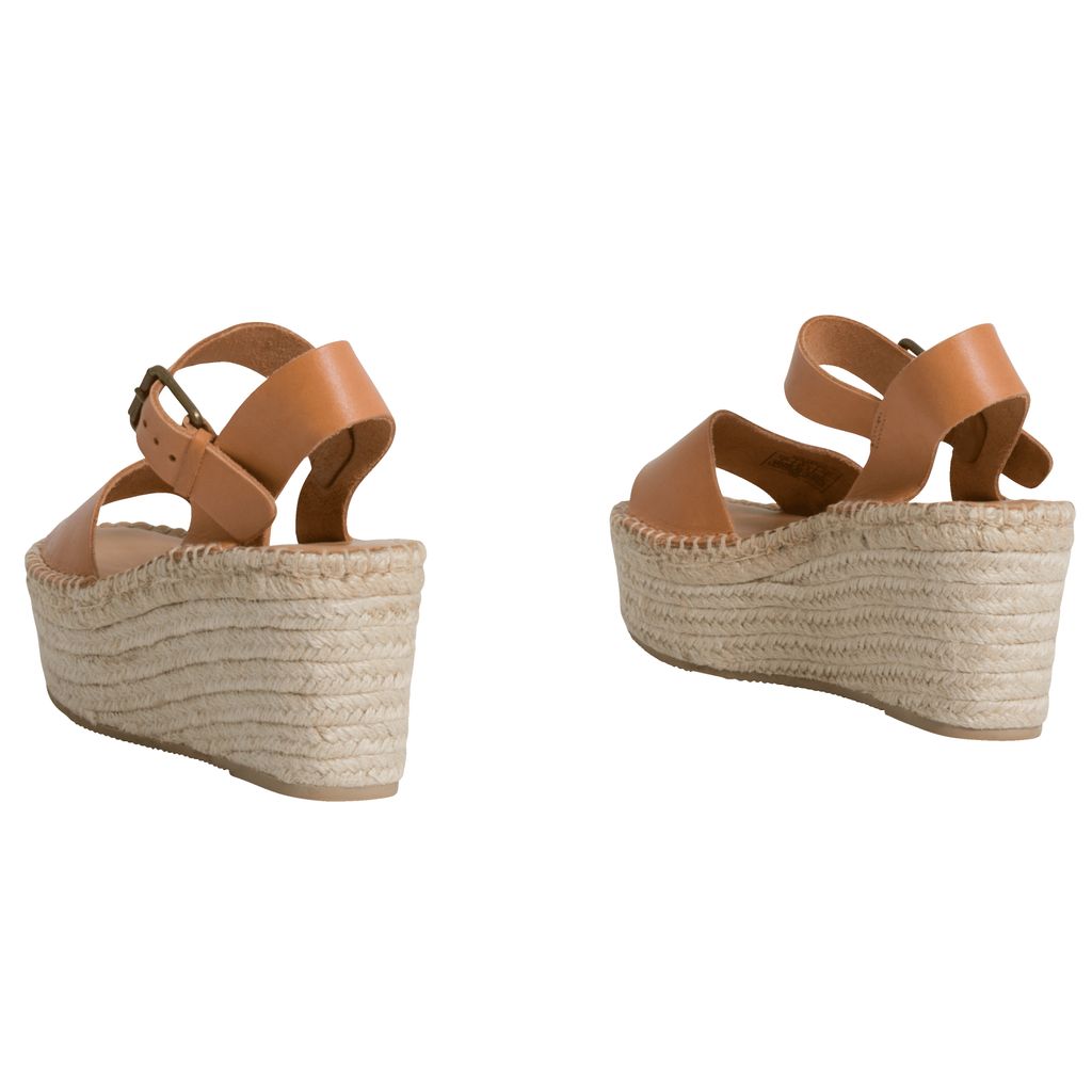 These open toe wedge sandals from Soludos feature a braided espadrilles platform, ankle strap buckle closure and rubber sole. In very good condition.