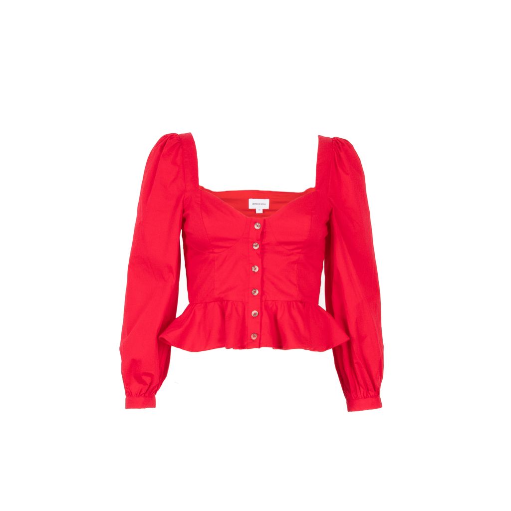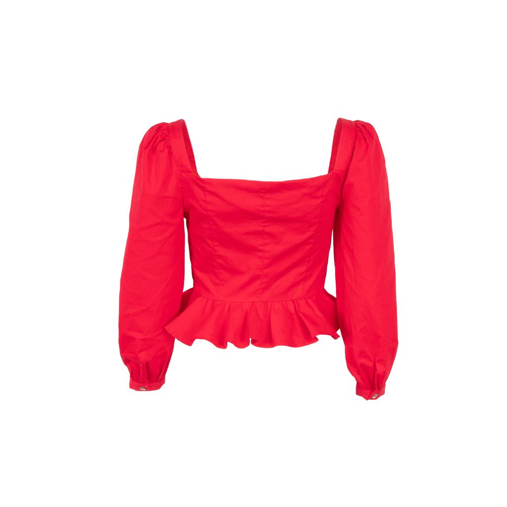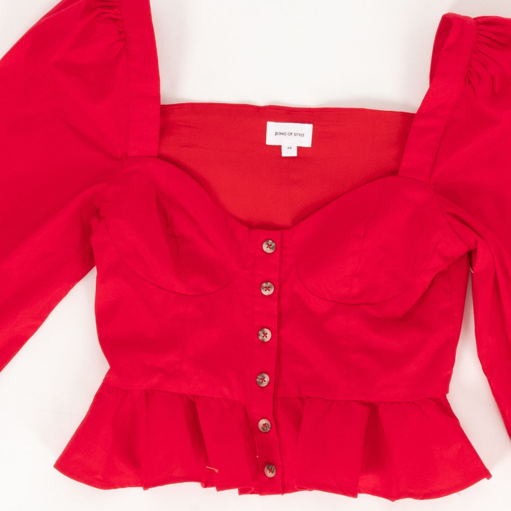 Femininity is defined in this sweetheart neckline and puff sleeve top from Song of Style. Peplum lower half creates definition at waist, while button closure front allows for ease of wearability.