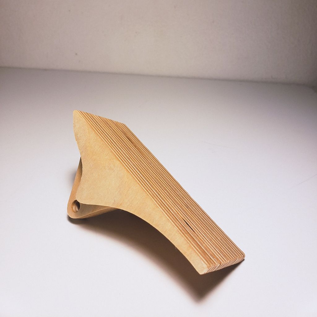 "I always had difficulties keeping the entrance door of my apartment opened while bringing groceries inside. I just wanted to solve that annoying problem by creating a door stopper. But a door stopper with a story linked to that specific door. As a result, I recorded the loud "Bamm!!" sound that the door makes when it closes. Then, I used the level graph obtained to generate the actual door stopper. Each layer on the object is related to a sub-signal produced by the 100dB sound. From a flat curve to a 3d object! It is a tangible representation of an invisible signal.’’