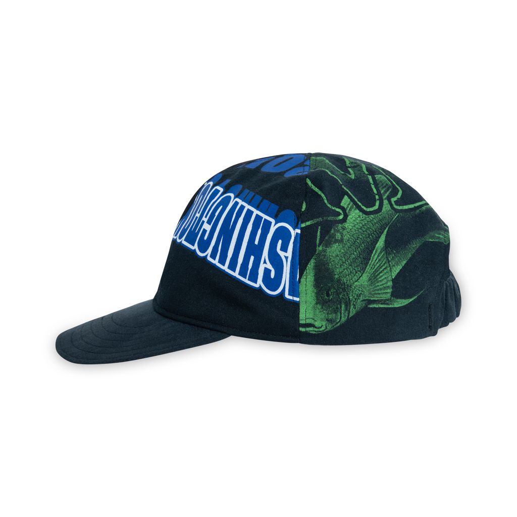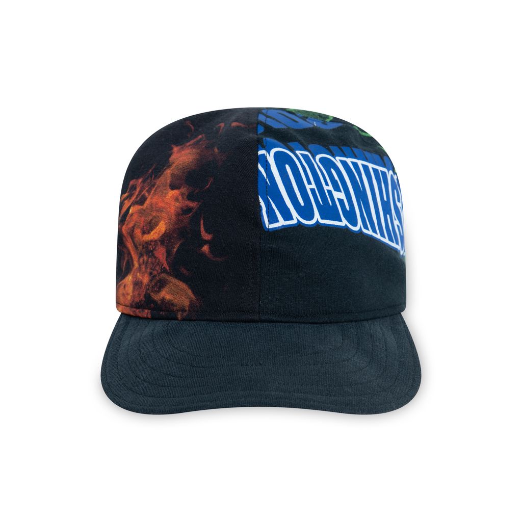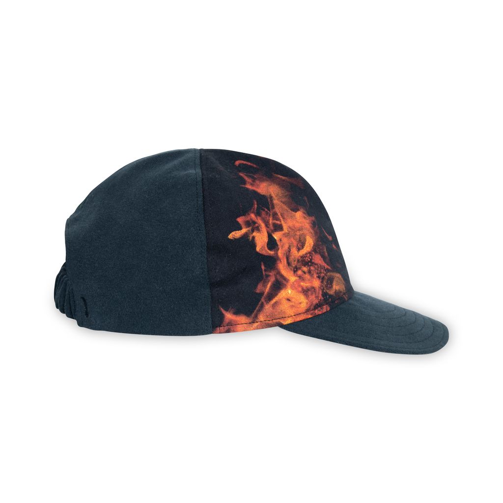 Souvenir Cap Black is a 1 of 1 cap handcrafted from upcycled T-shirts. Elasticated back and cotton lining. Made in UK.