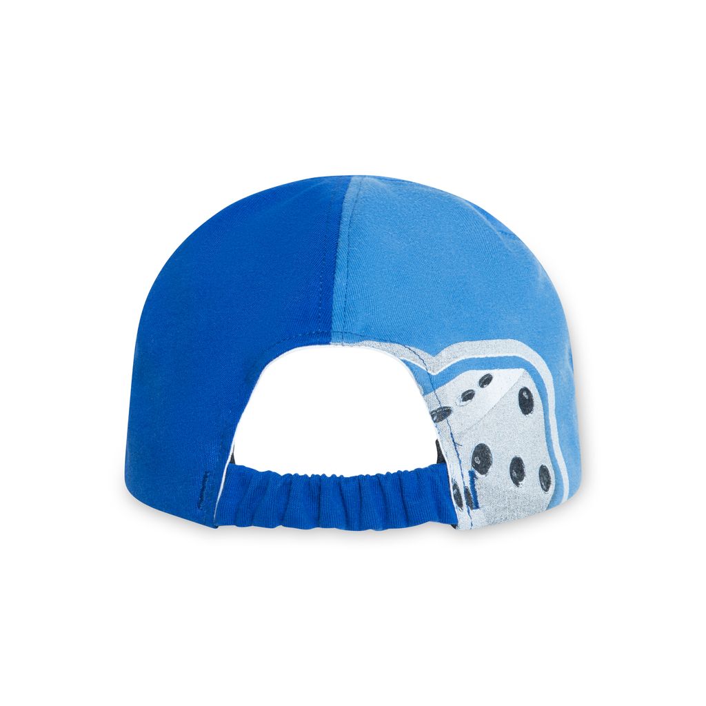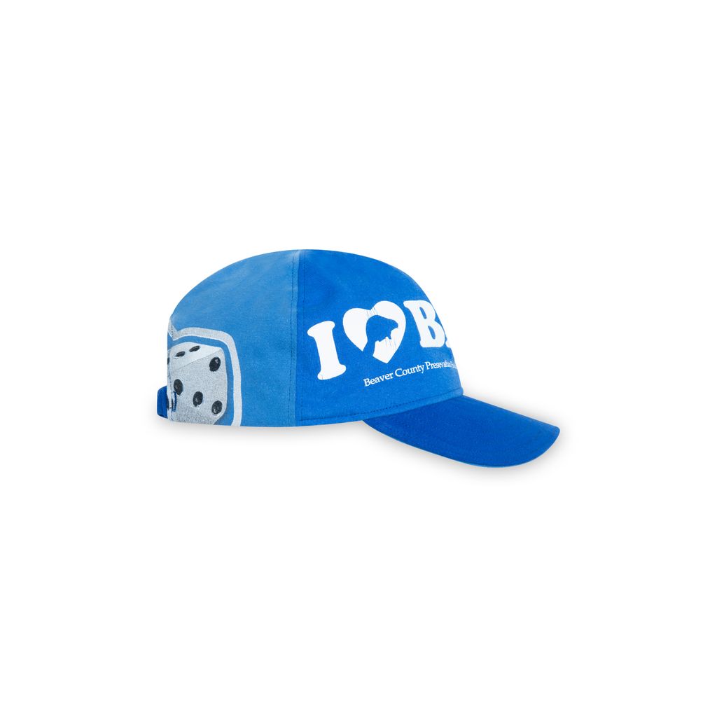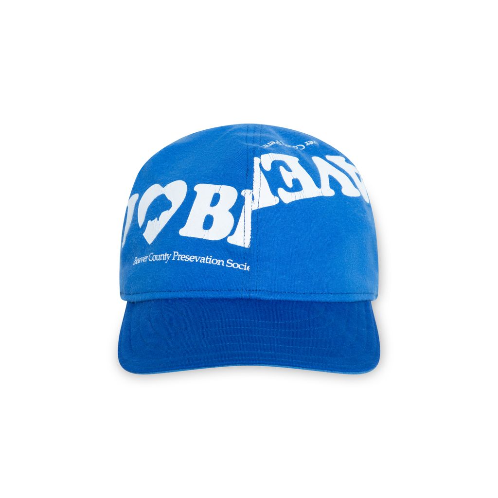 Souvenir Cap Blue is a 1 of 1 cap handcrafted from upcycled T-shirts. Elasticated back and cotton lining. Made in UK.
