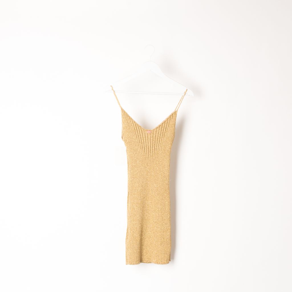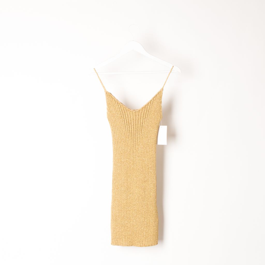 Brand new with tags, sparkle knit metallic tank dress by For Love and Lemons. This dress was designed with a soft dense knit and is complete with raised rib stitching, a straight neckline and adjustable shoulder straps.