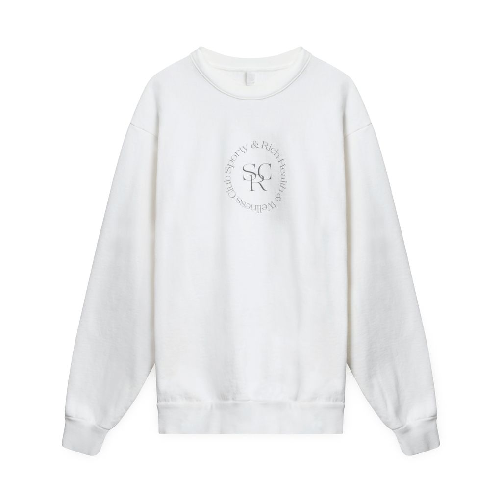 Long Sleeve Cotton Fleece Sweatshirt In White. Rib Knit Crewneck Collar, Cuffs, And Hem. Logo And Text Printed In Black On Chest.100% Cotton.