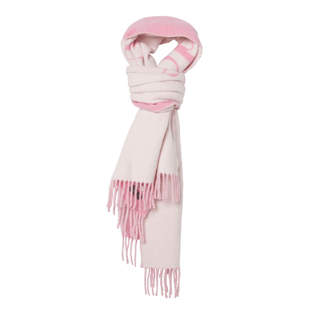 Sporty and Rich's classic logo double face scarf in Cream/Pink features double face scarf features Classic Logo knitted in Intarsia. Made in Italy at one of the best scarves makers in the world.