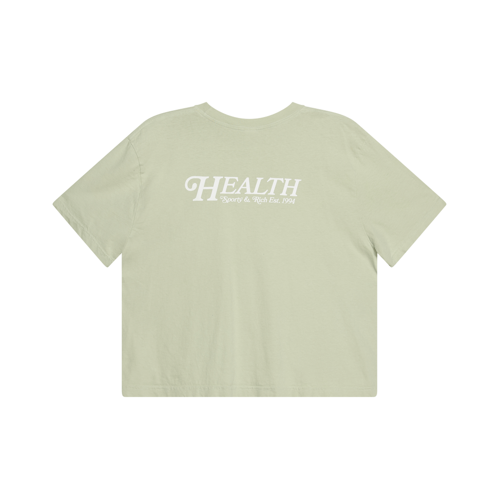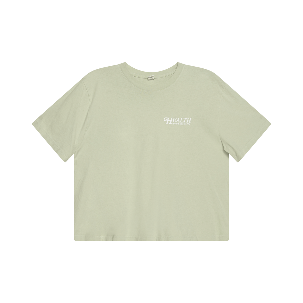 Sporty & Rich 'Health' Tee features pullover fit, printed text on front and back.