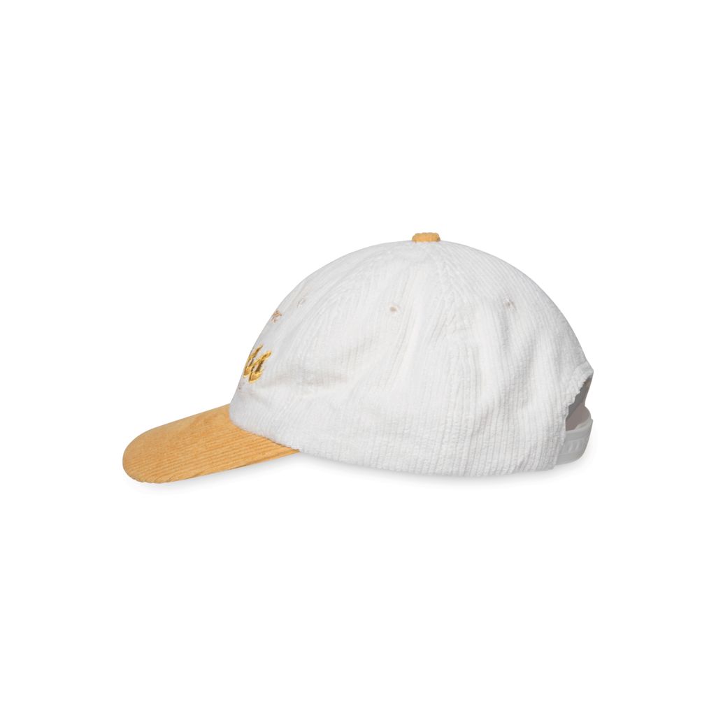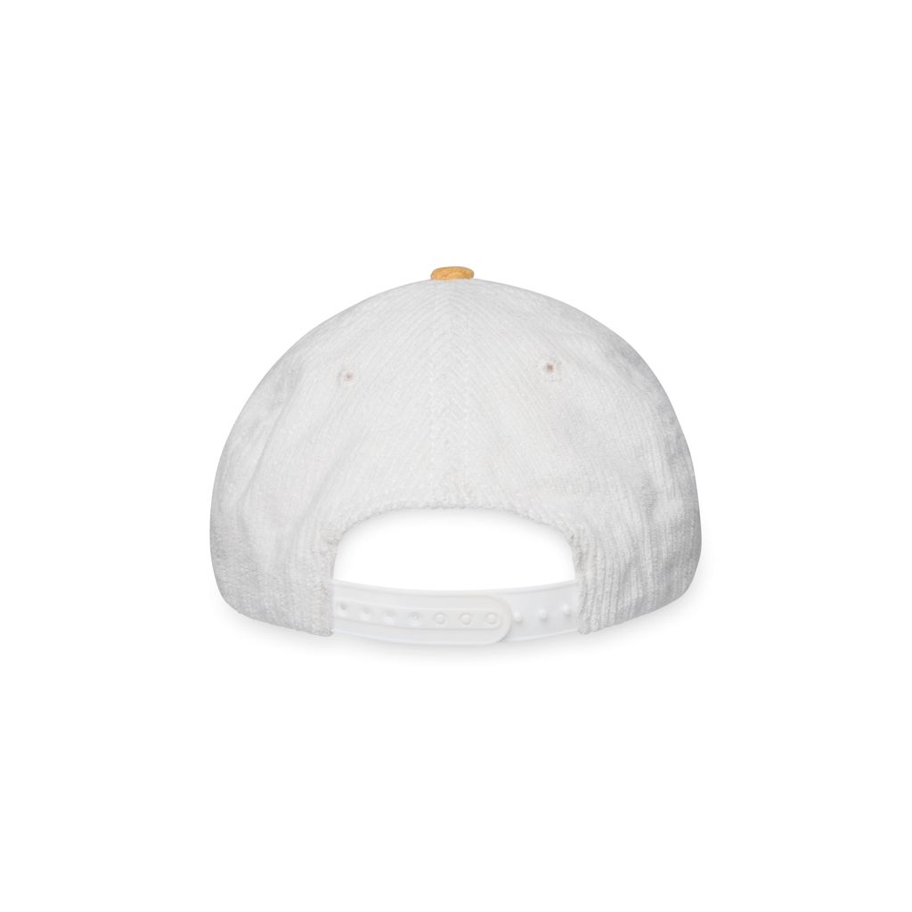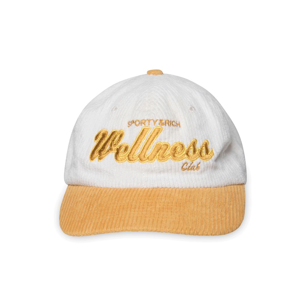 Sporty & Rich Wellness Club Cotton Corduroy Baseball Hat features retro inspired embroidery and adjustable snap fastening at back.