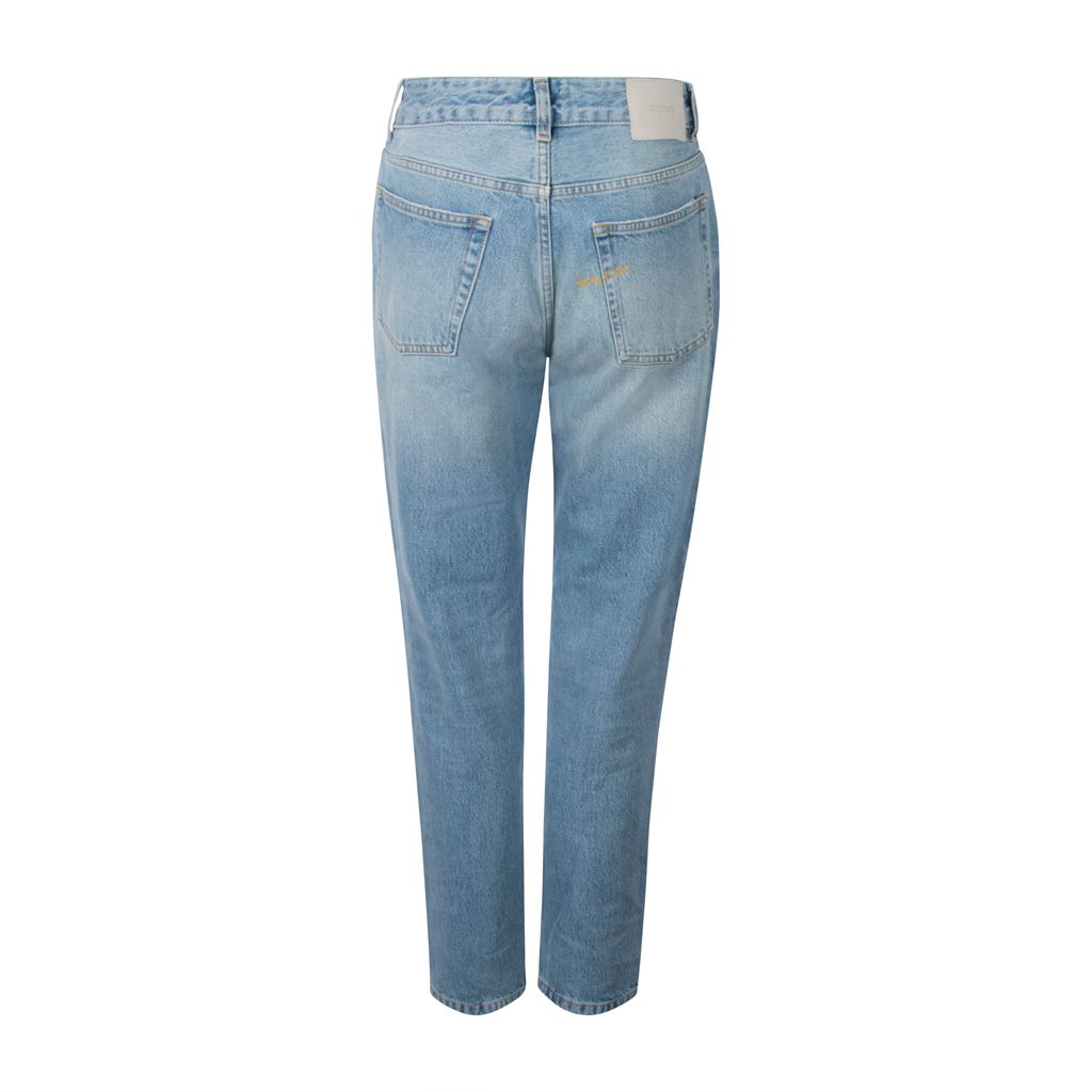 These jeans from Sporty & Rich x Harmony Paris have a high waisted mom jean fit and feature a button-fly closure along with functional front/back pockets. These jeans have a light blue wash to them and are in excellent condition. Sporty & Rich embroidered logo at the back pocket.