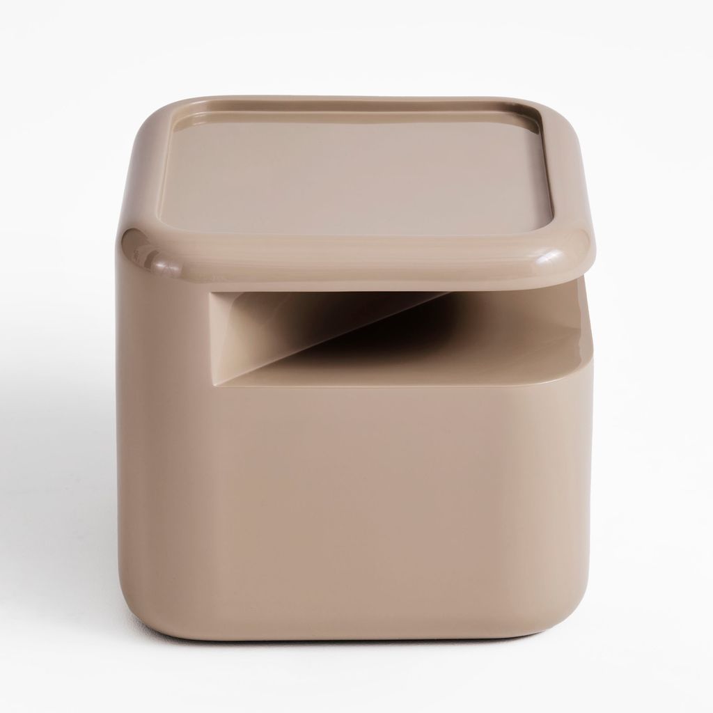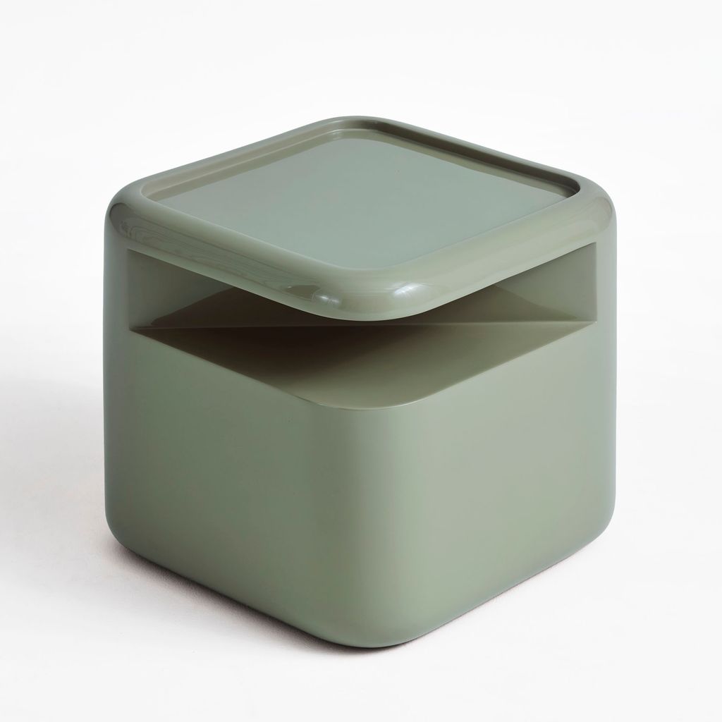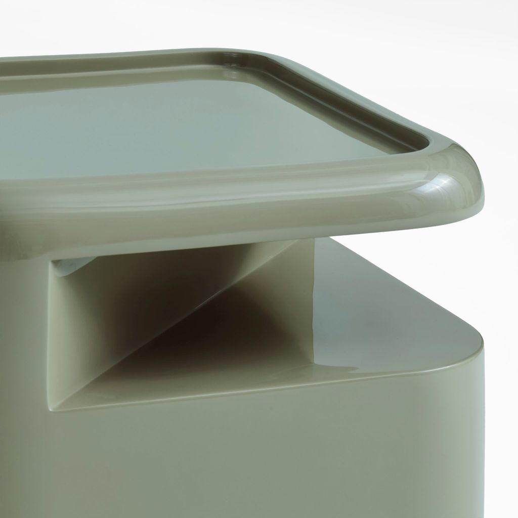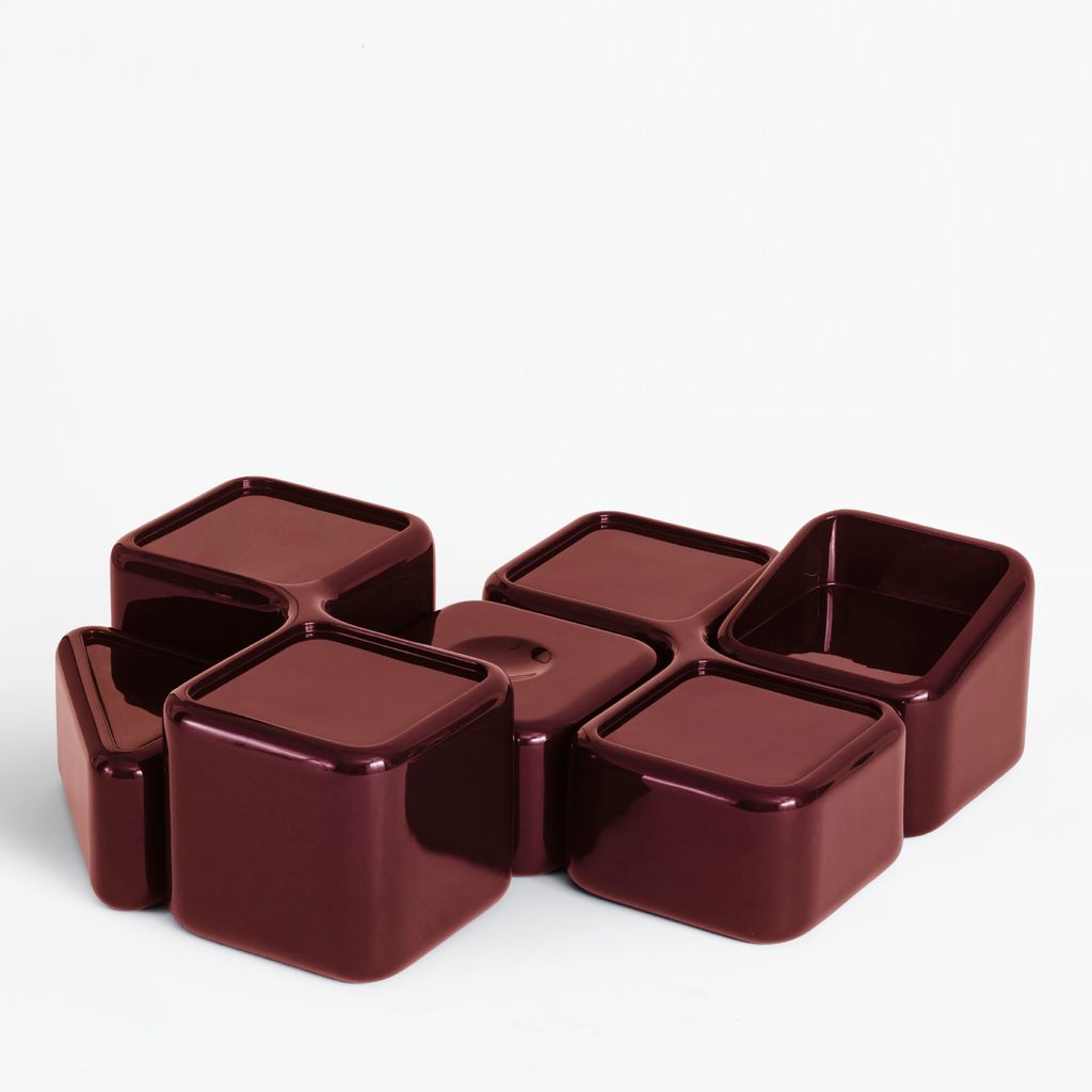 Each table is meticulously handcrafted by master artisans using fiberglass, which is first cast in molds and then manually coated and polished multiple times to achieve different high-gloss finishes. The entire production process is done by hand, requiring a high level of craftsmanship for every piece. The modular tables come in five colors: white, brown, green, red, and anthracite.