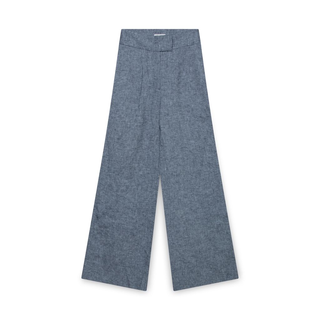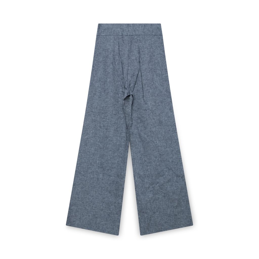 St. Agni Anna Trouser features oversized waist band, high-waist silhouette, and wide legged hem.