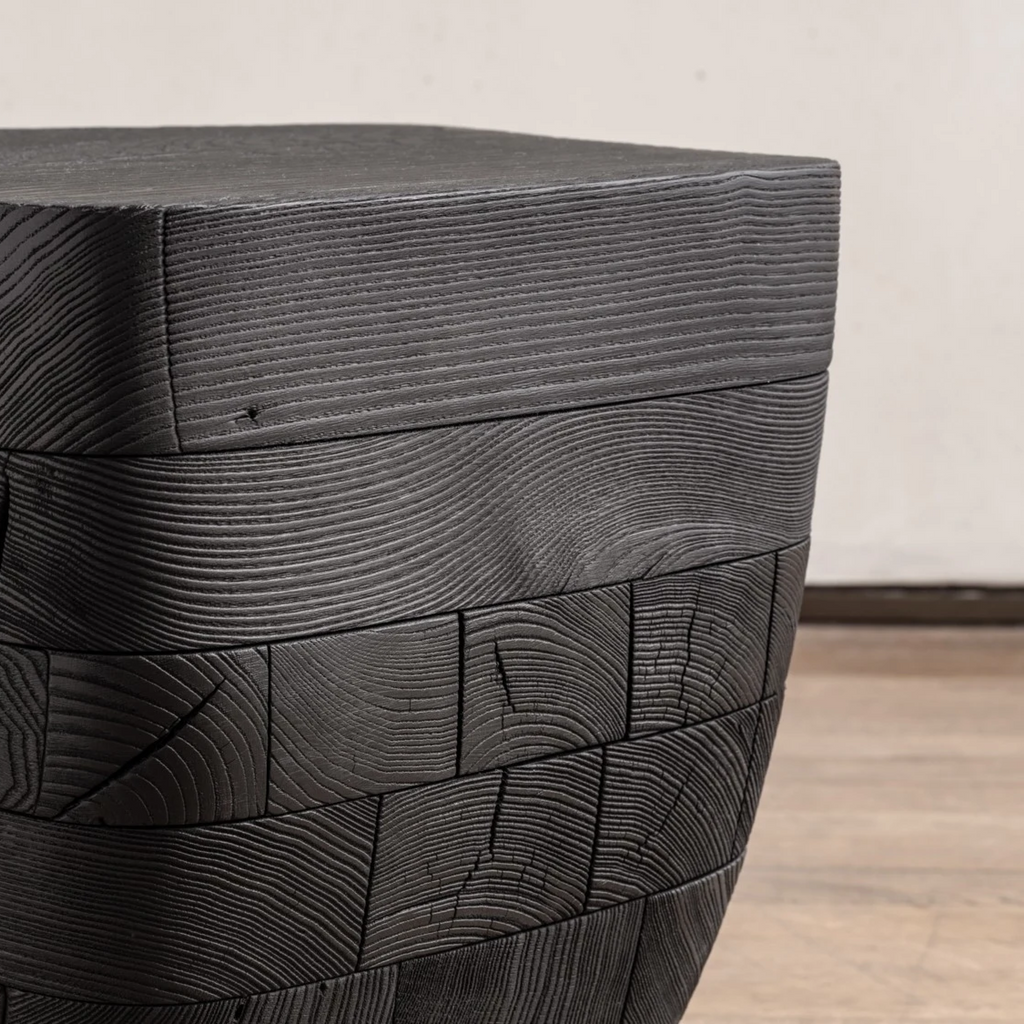 Hand carved in solid ash wood, ebonized with oil and wax finish.