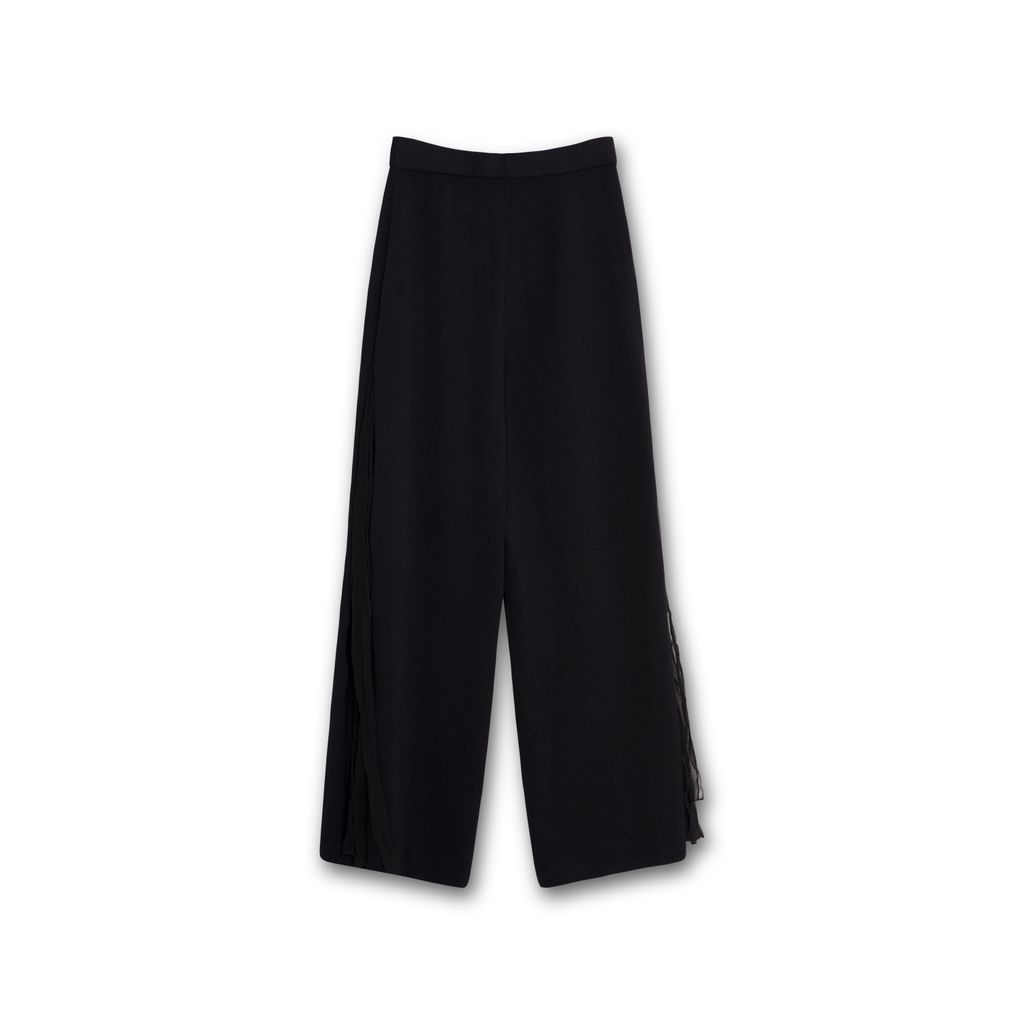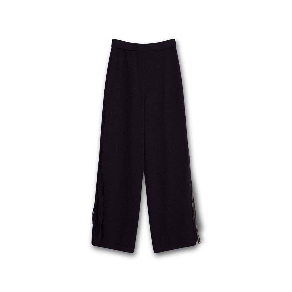 St Johns Tassel Pants features knit material, open slits on side with organza tassels, thick elastic waistband.