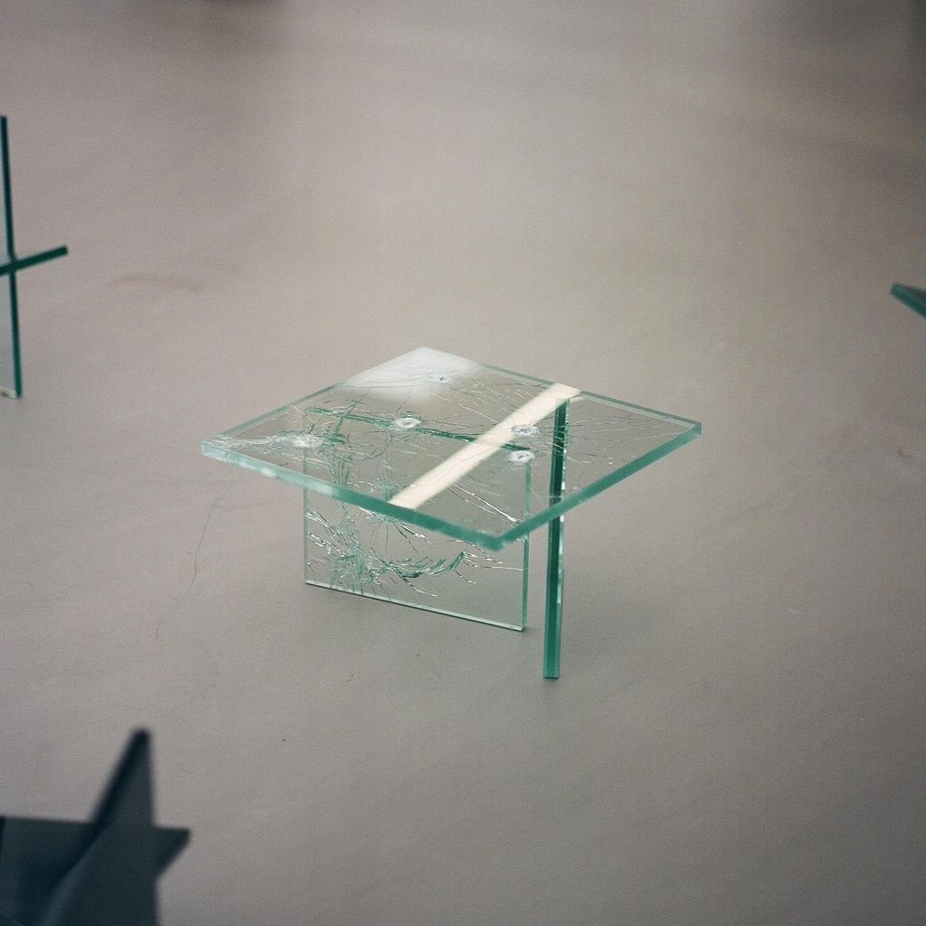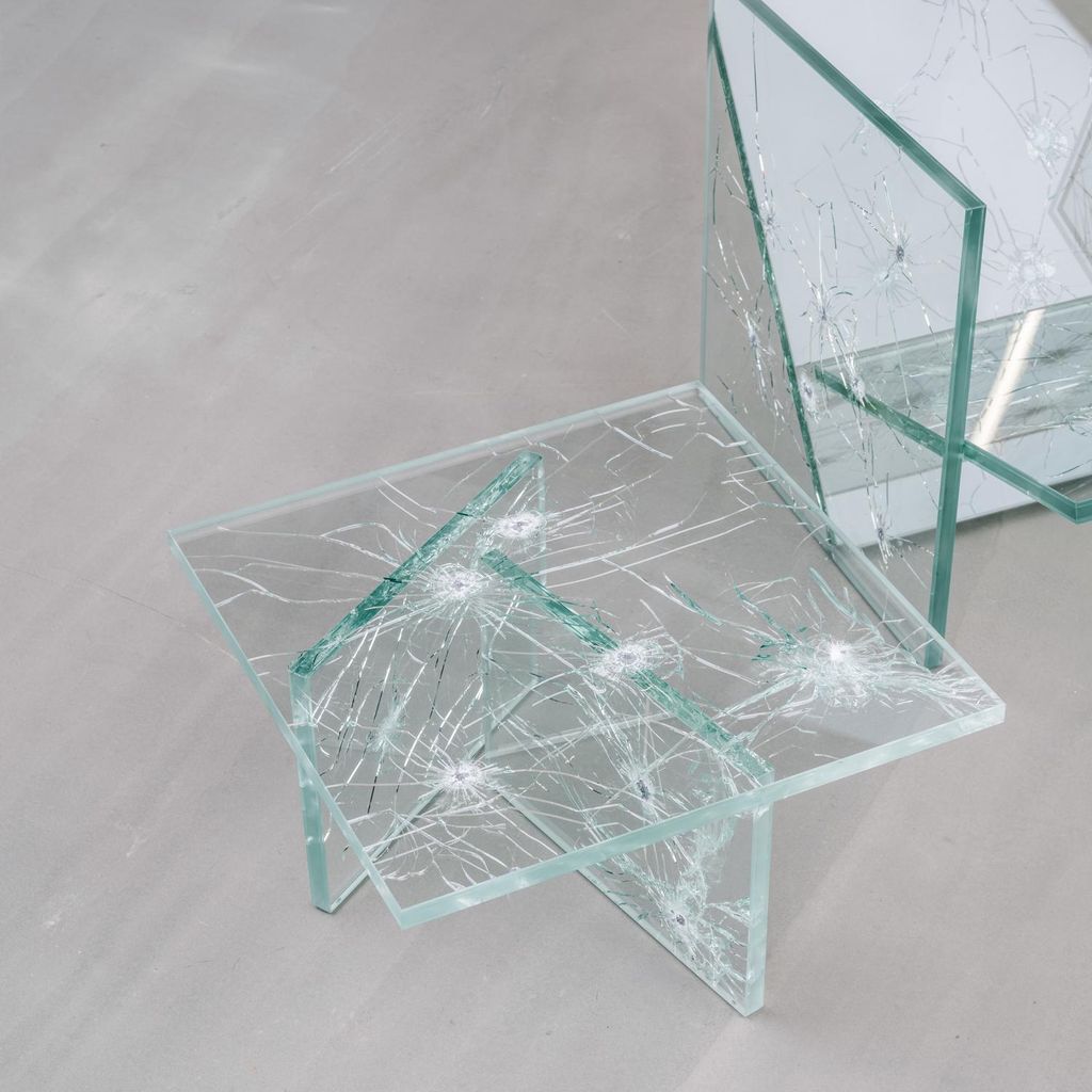The War Side Table st.1[bpg] is a striking artwork that challenges our perception of war. Crafted from bulletproof glass, it bears no visible seams, giving it an otherworldly quality. Shot by the artist, the shattered surface symbolizes the fragility of war and prompts reflection on its devastating consequences. This piece serves as a powerful reminder of the human toll of conflict and calls for a more peaceful world.