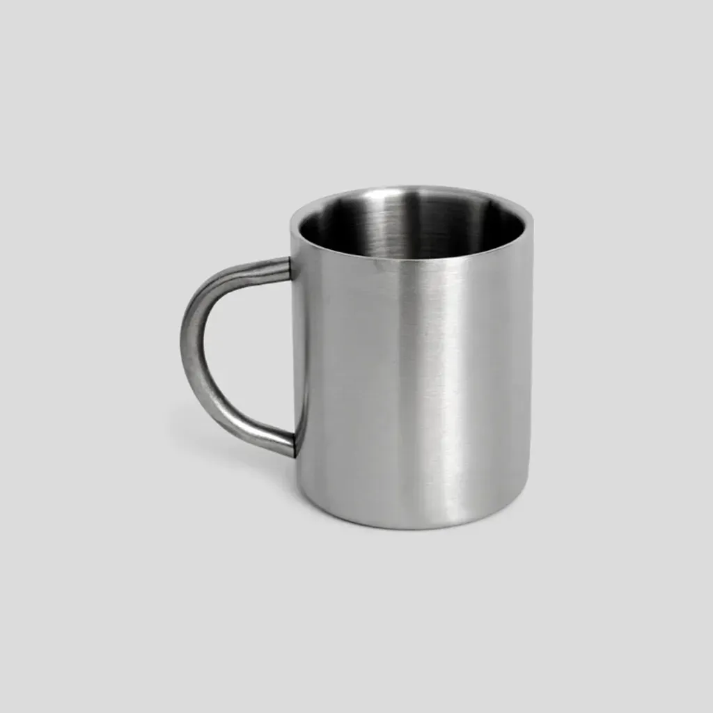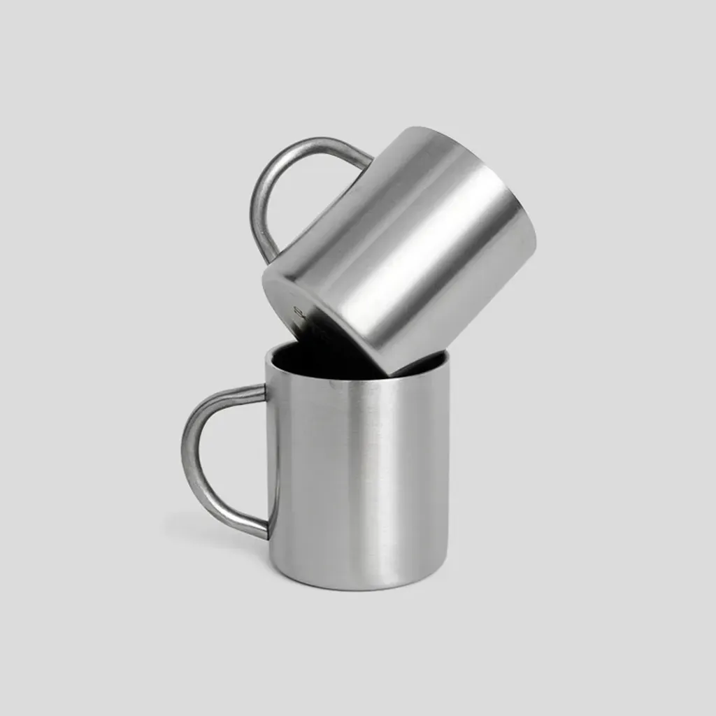 Enjoy your coffee with this high-quality stainless steel coffee mug. It boasts an industrial design and is made of premium grade stainless steel, ensuring durability and long-lasting use. The insulated walls keep your drink at the perfect temperature, whether hot or cold. Specs. Dishwasher Safe Comes as a set of 2 300 Ml Do not microwave Engraved Logo at the bottom