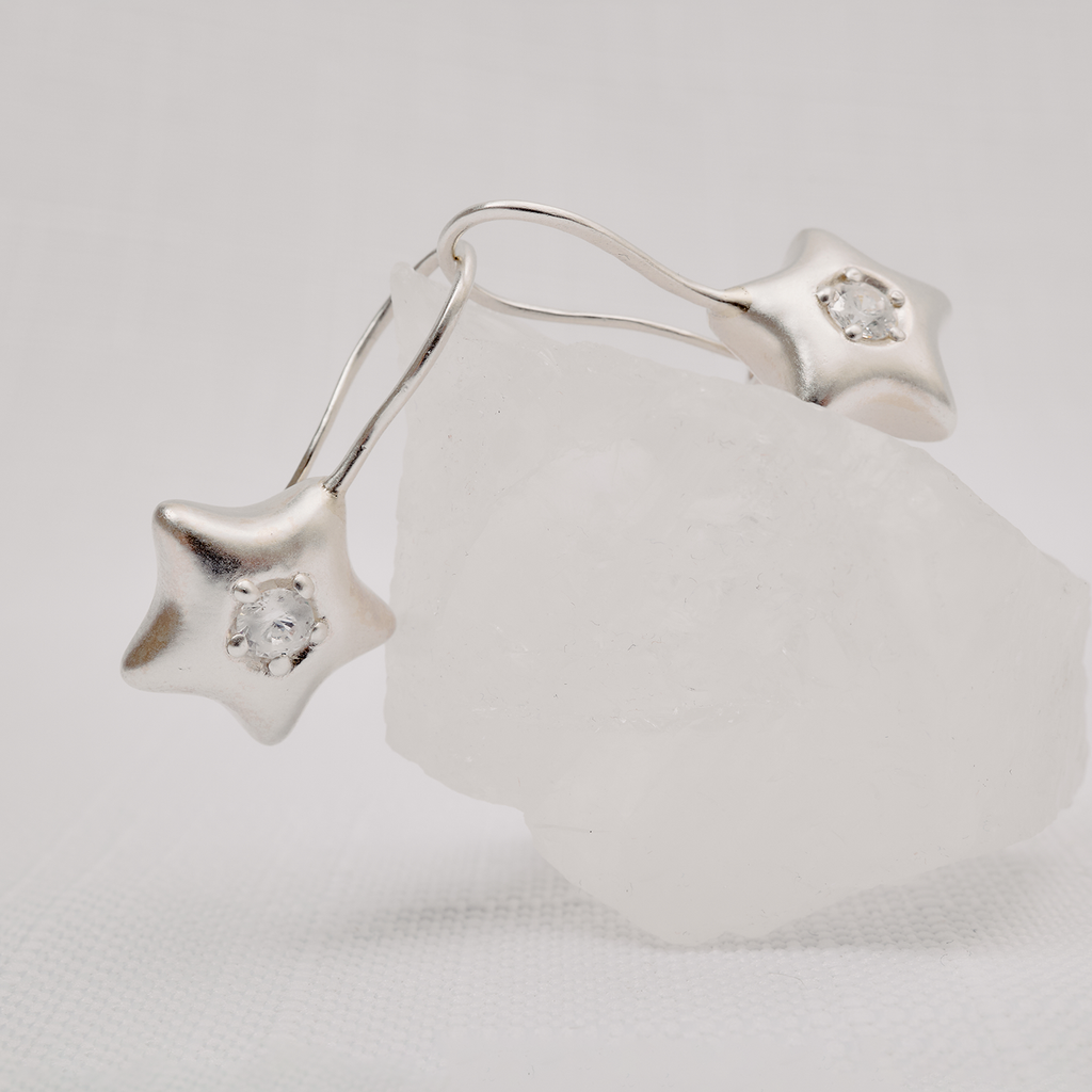 A special pair of earrings featuring a soft contour star and hand-fabricated tapered ear wire.