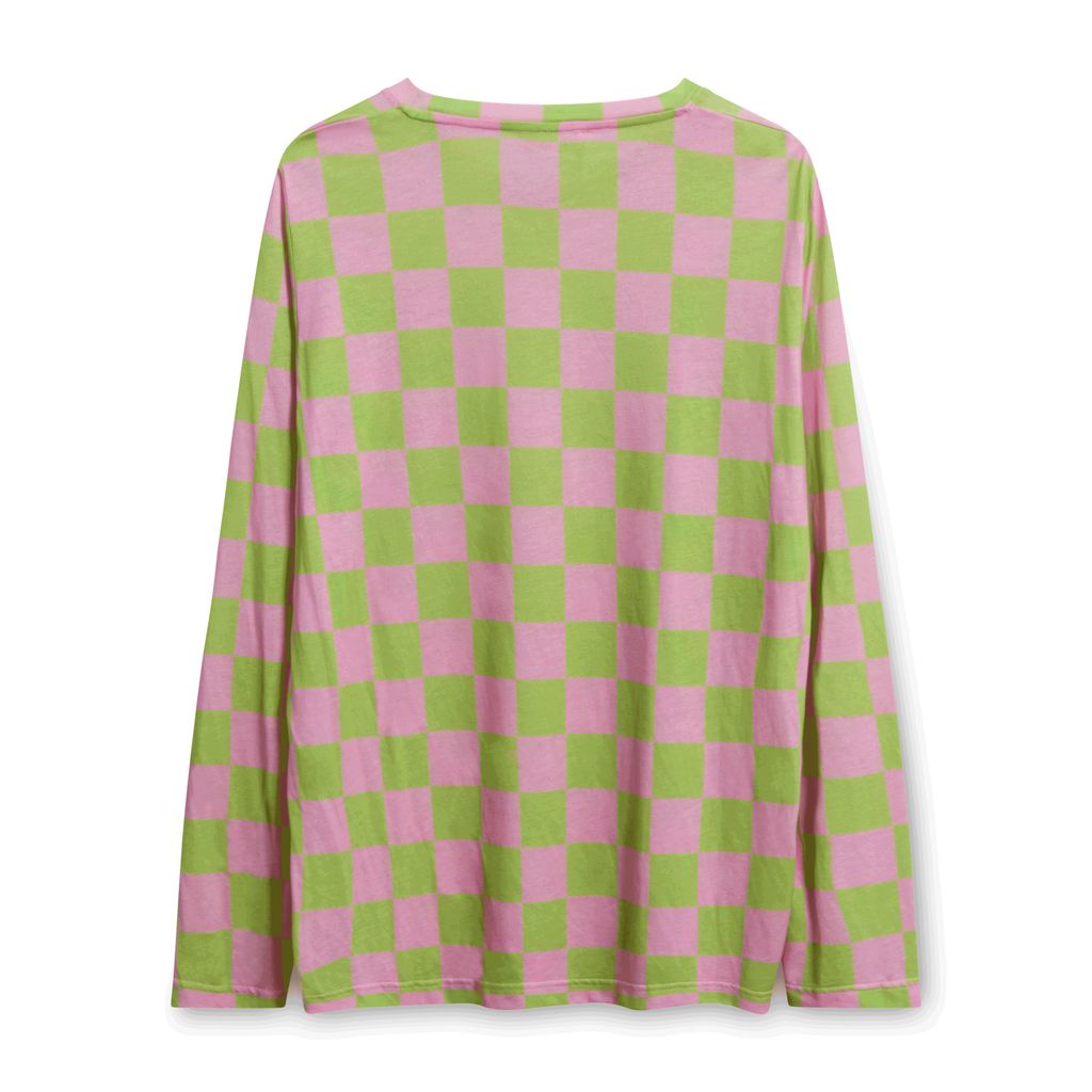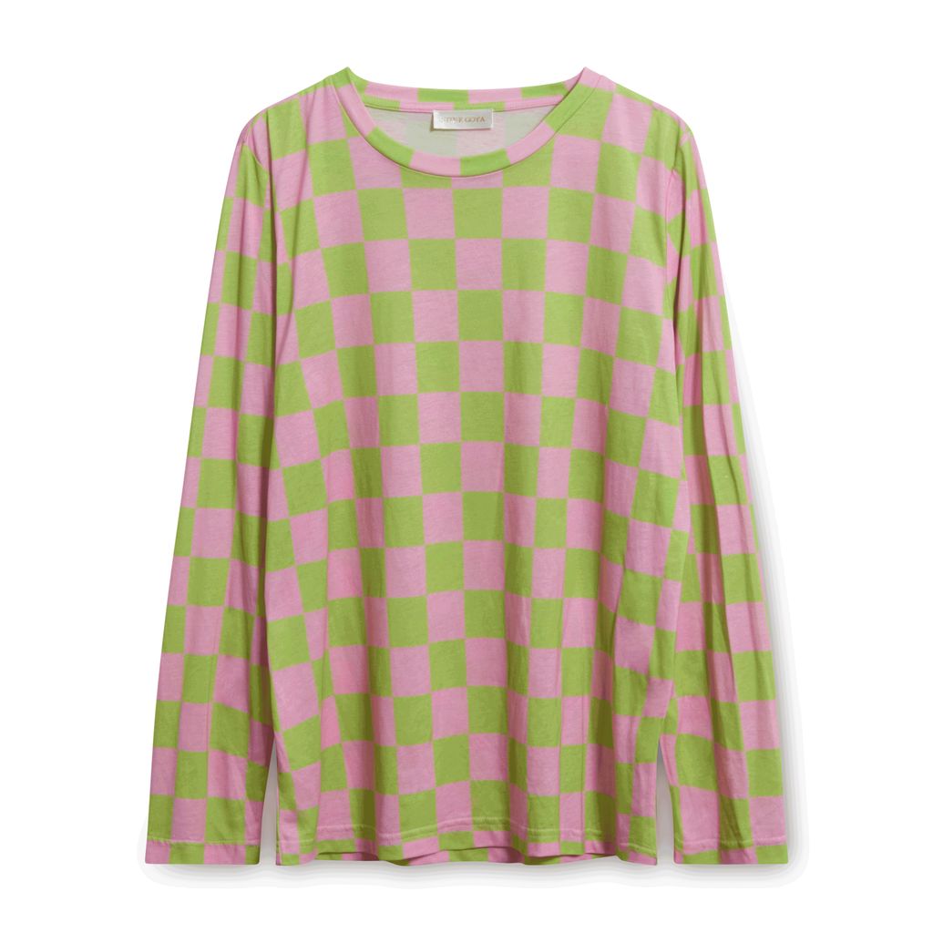 Crafted from a light cotton blend, this checkerboard printed top from Stine Goya is cut for a relaxed fit and features a round neckline. Pre-worn. In excellent condition.