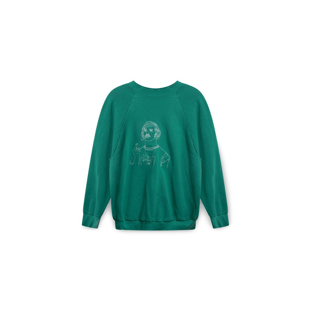Stitched Graphic Crewneck Sweater features stitched graphic on front.
