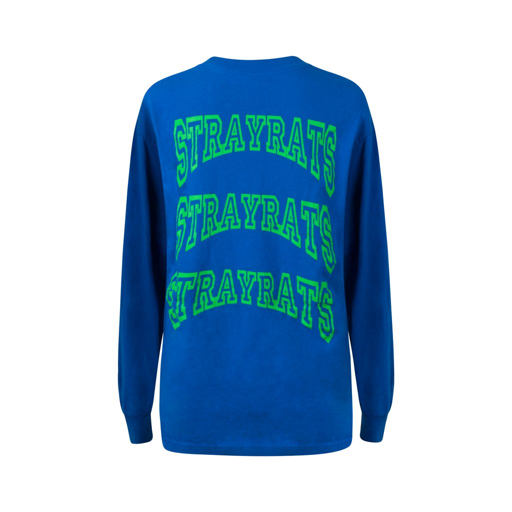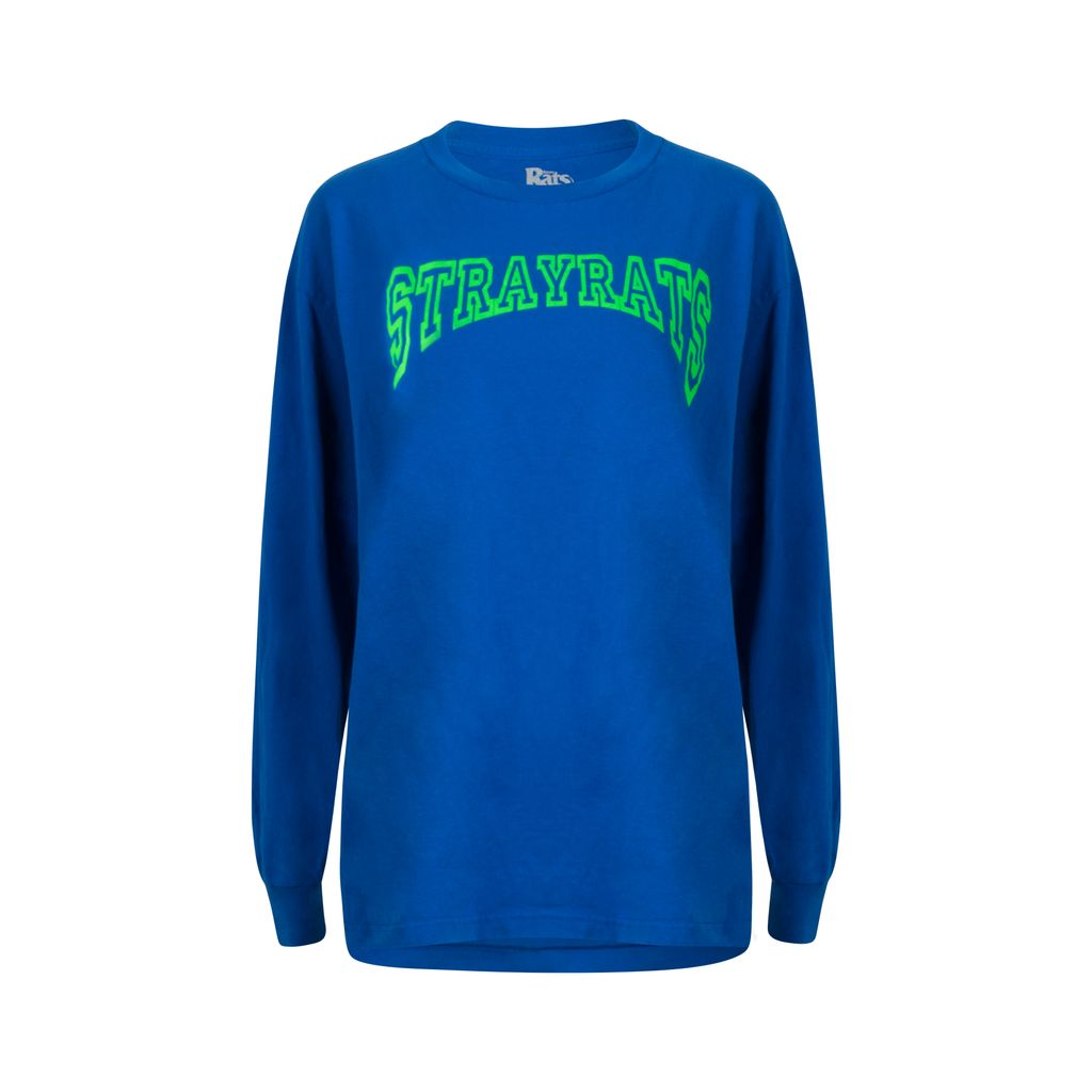 This long sleeve tee from streetwear label Stray Rats feature the Stray Rats logo in neon green in at the front and feature a similar design at the back. Gently worn, in good condition.