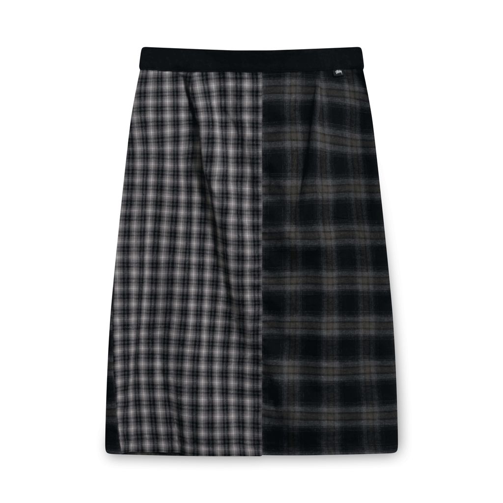 This high-rise midi skirt from Stussy is cut for a fitted silhouette and features an all-over plaid pattern, button-front closures and concealed side slit pockets. Unlined. Pre-owned. In good condition. Tag reads 5, fits like Small.