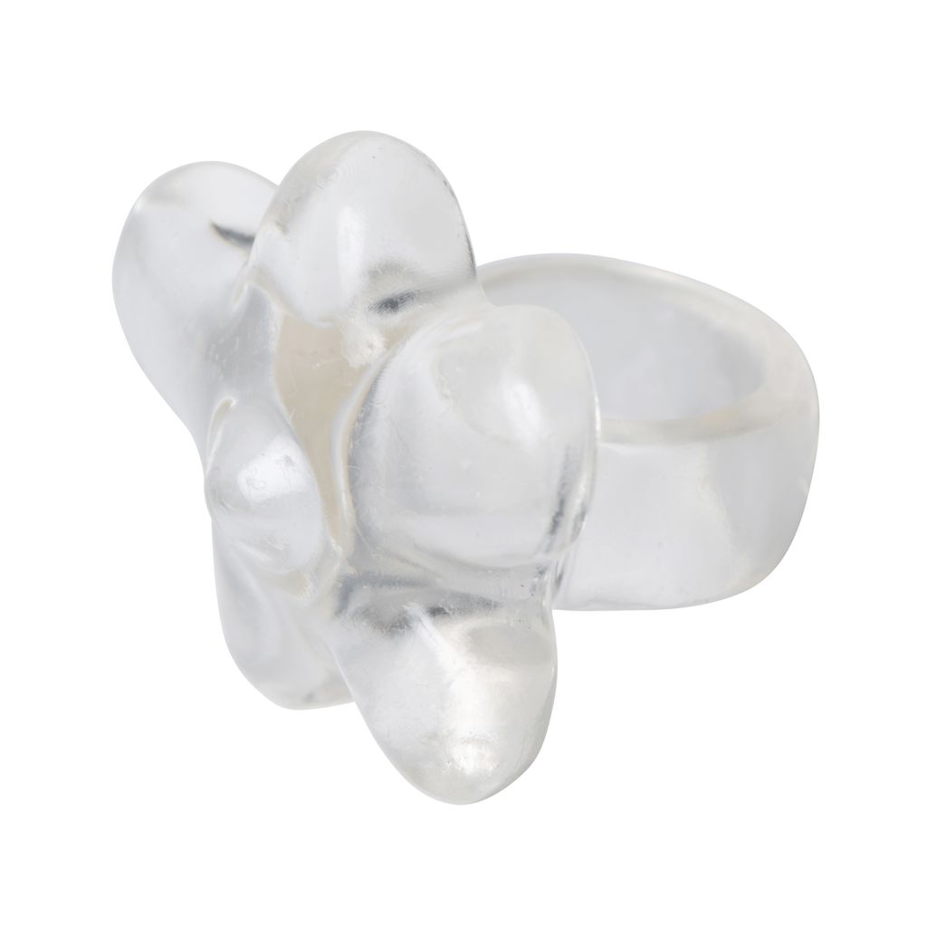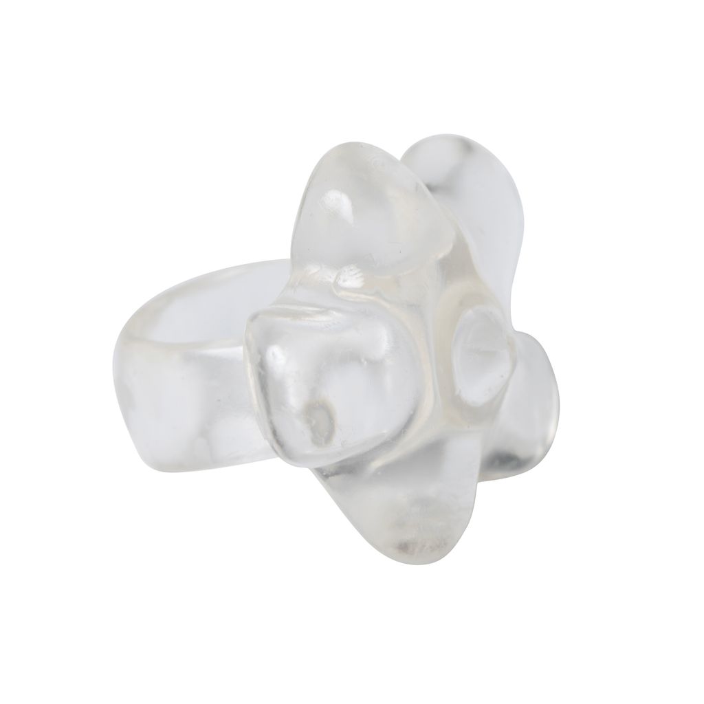 Super Invisichew is a flower-shaped resin ring. Handmade in London.