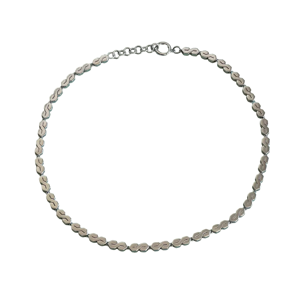 Super Silver S Choker features silver S design with adjustable chain.
