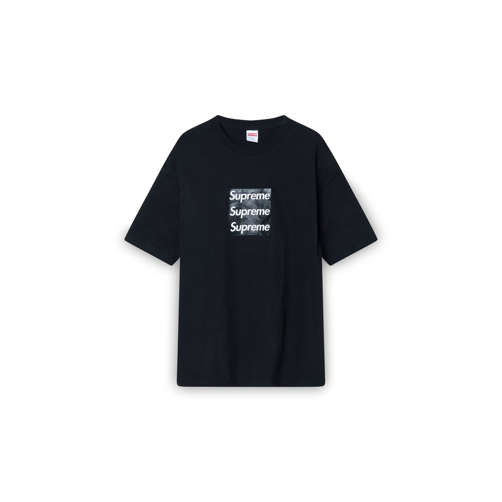 Supreme Black Logo Tee features white logo graphic on front and white graphic on back.