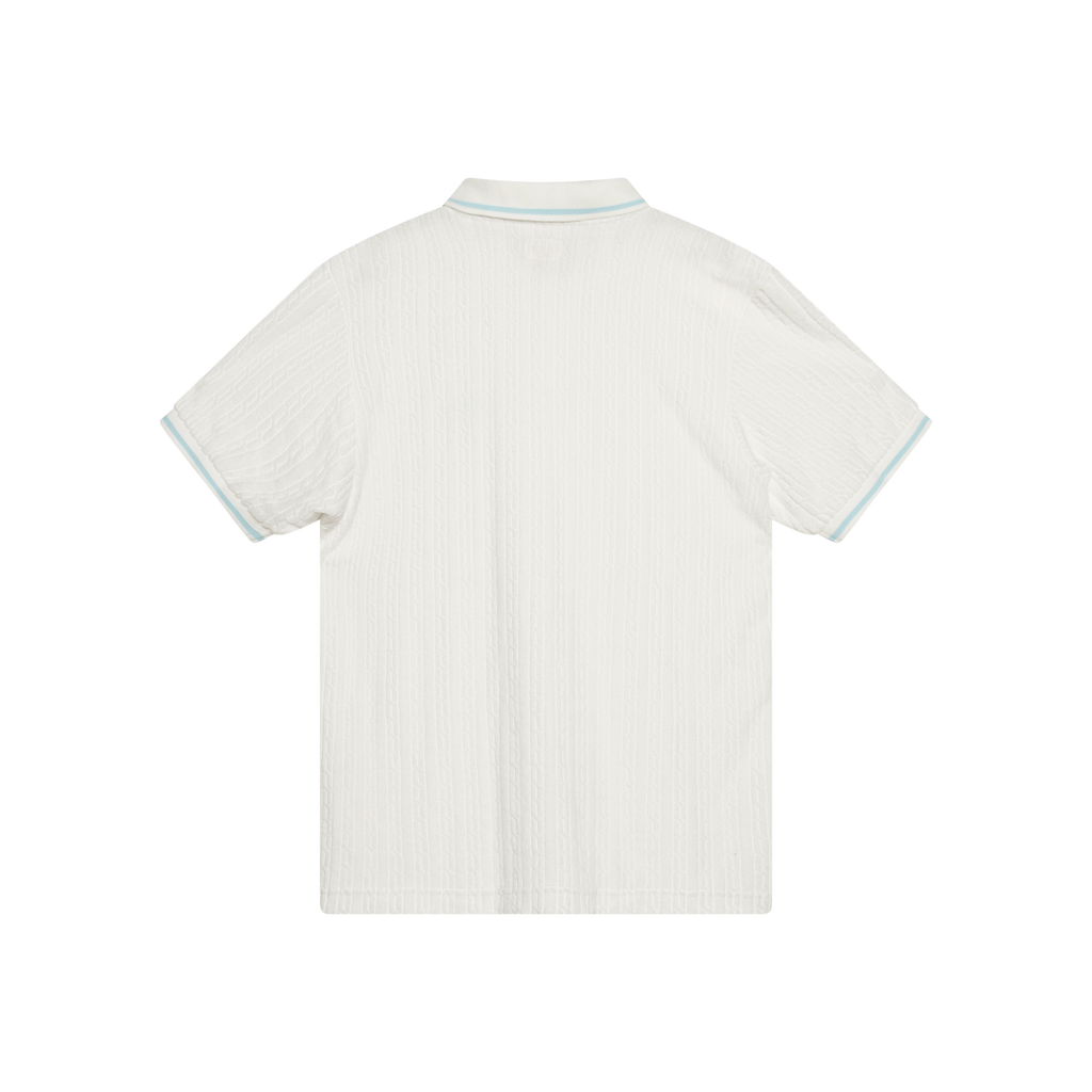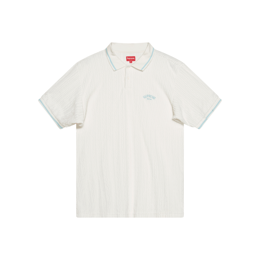 Supreme Cable Knit Terry Polo features classic collar and ribbed cuffs.