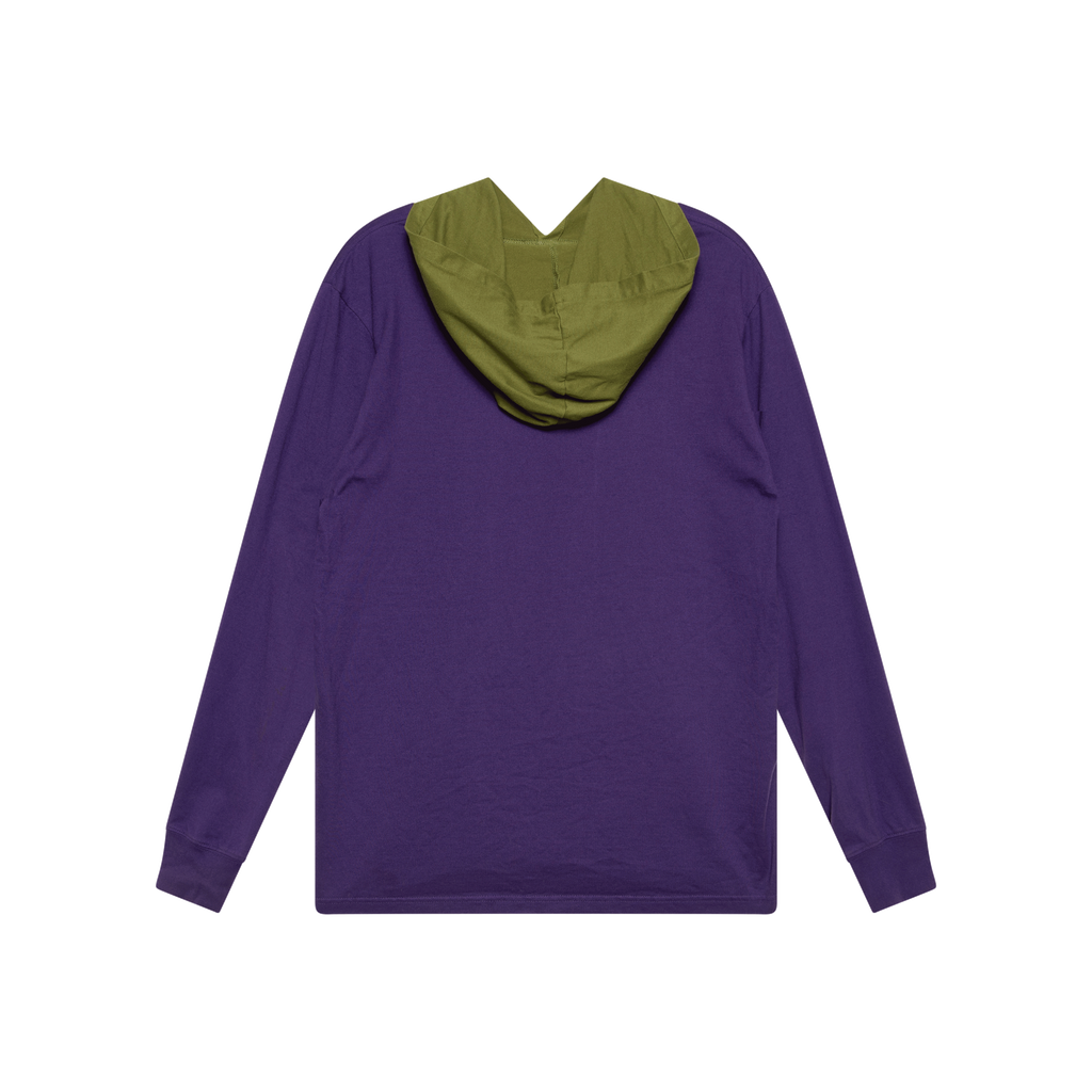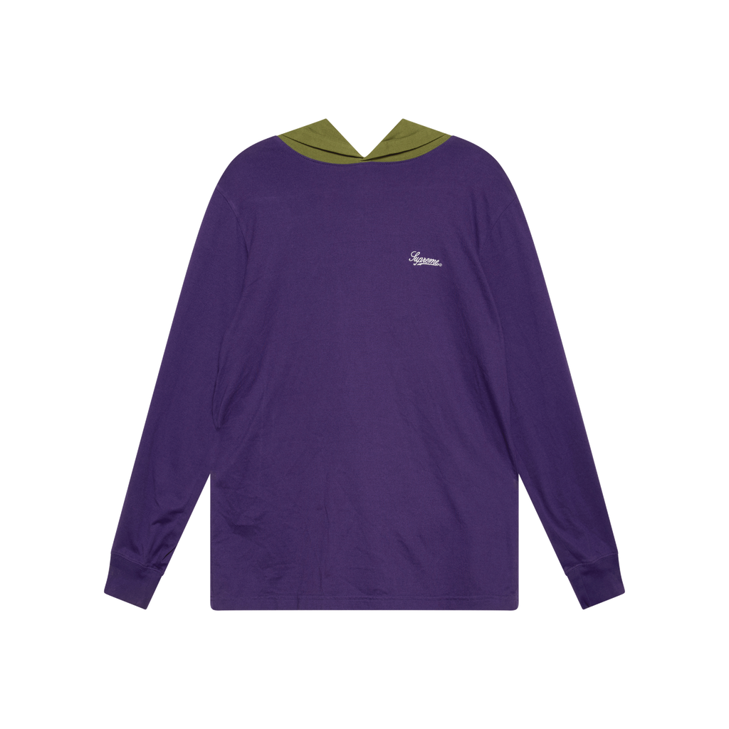 Supreme Color Block Hooded Long Sleeve is from SS17 and features a green hood, purple body, and script logo on chest.