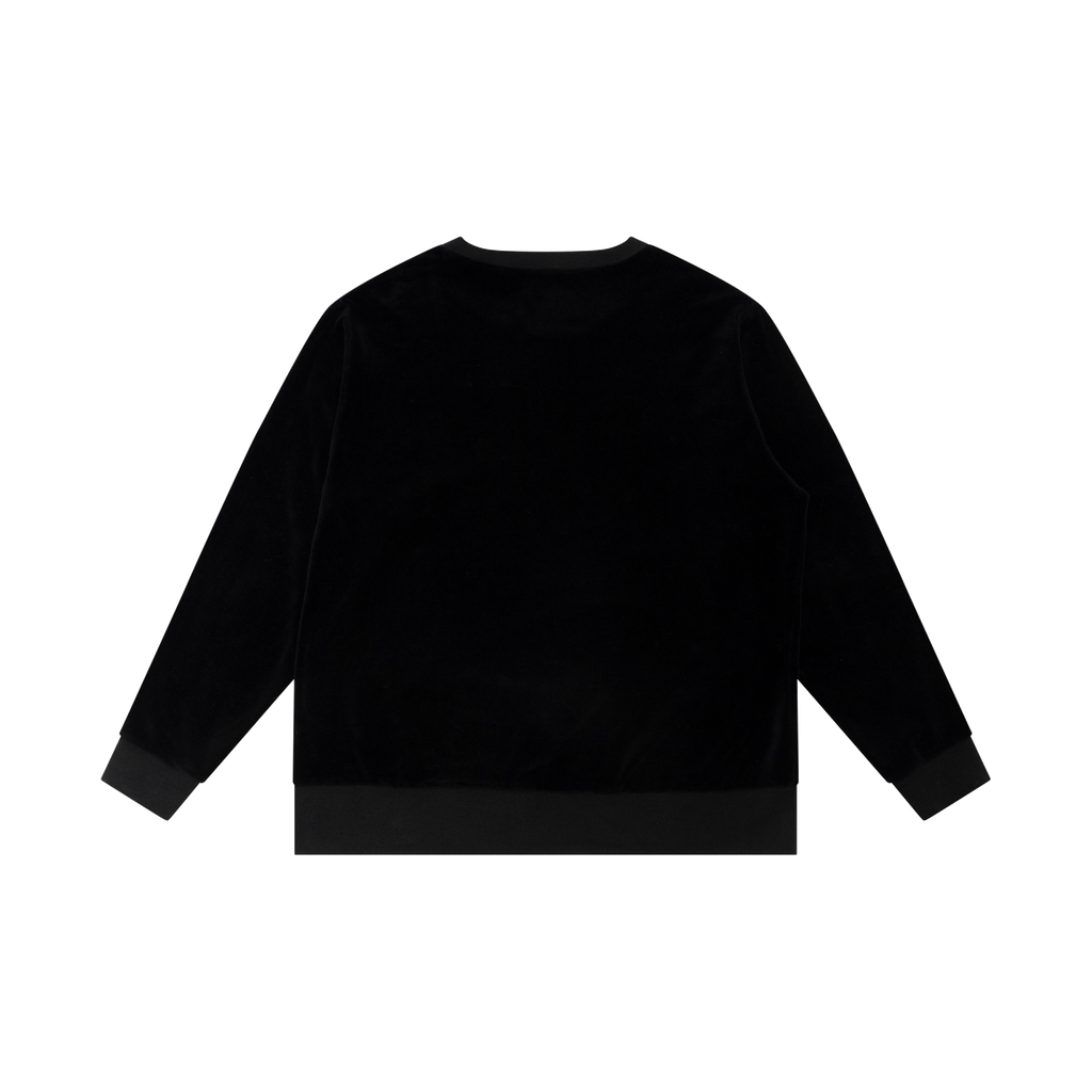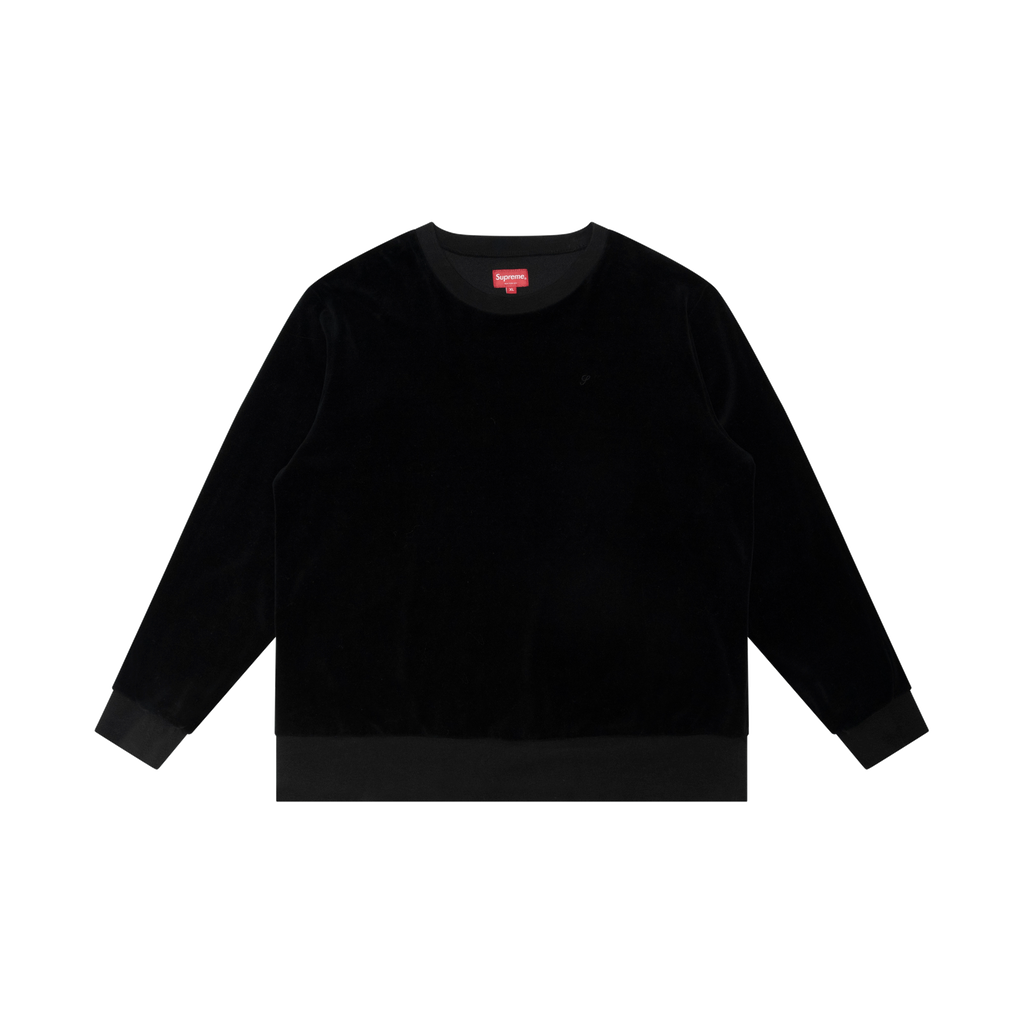 Supreme Velvet Sweatshirt features knit collar, waistband, and cuffs.