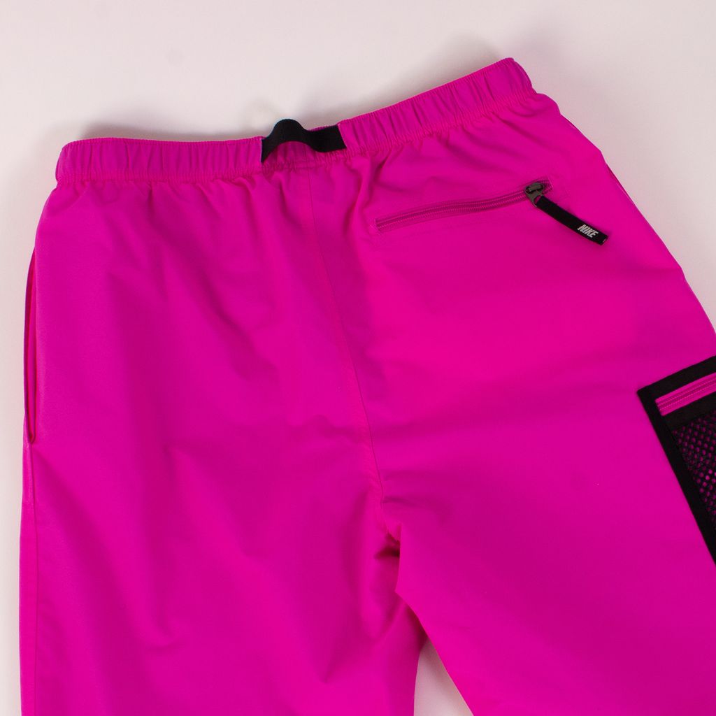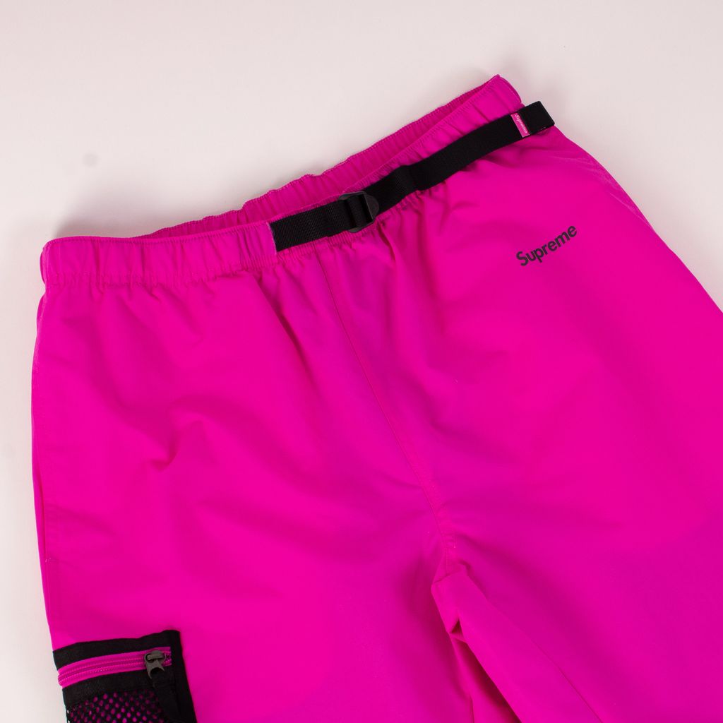 Hard to find and hard to miss, these fuchsia running pants from Supreme and Nike are a hypebae's dream. Features technical fabrication, Supreme printed logo on front below waist, elastic waist band and ankle cuffs, netted side pocket with zipper closure, and pull tie waist.