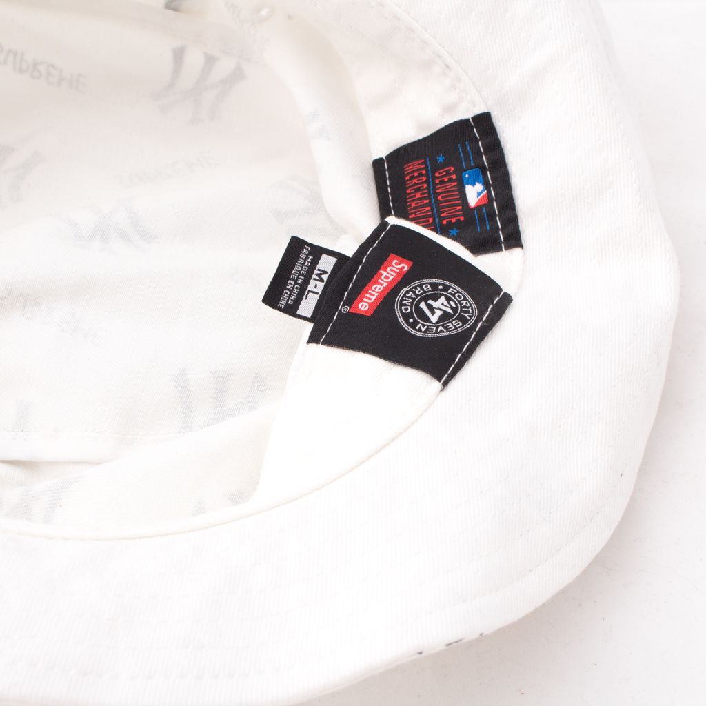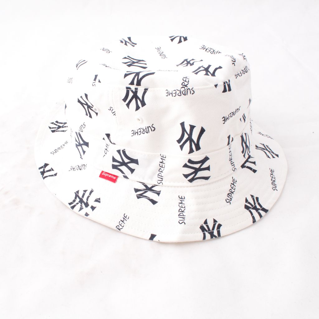 Like new, Supreme x Yankees Crusher Bucket Hat in white, screen print logos