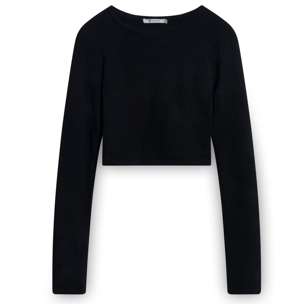 This long sleeve from Alexander Wang's essential body line, is an easy and versatile piece that pairs fantastically with any outfit. This top is made from a soft body warm fabrication, has small rib knit bands at neck, waist, wrists, and cropped silhouette. Gently worn, in good condition, pilling in some areas from wear.