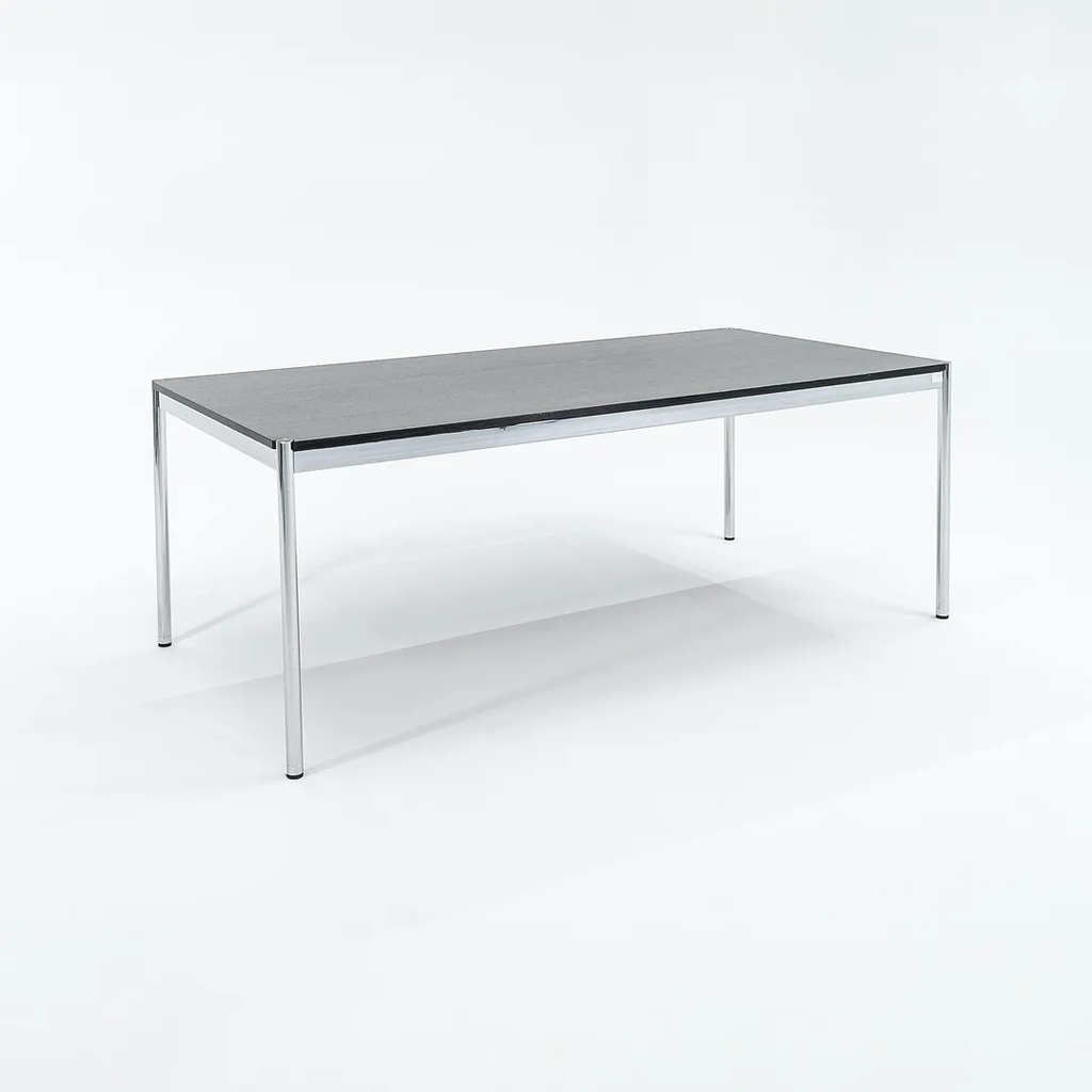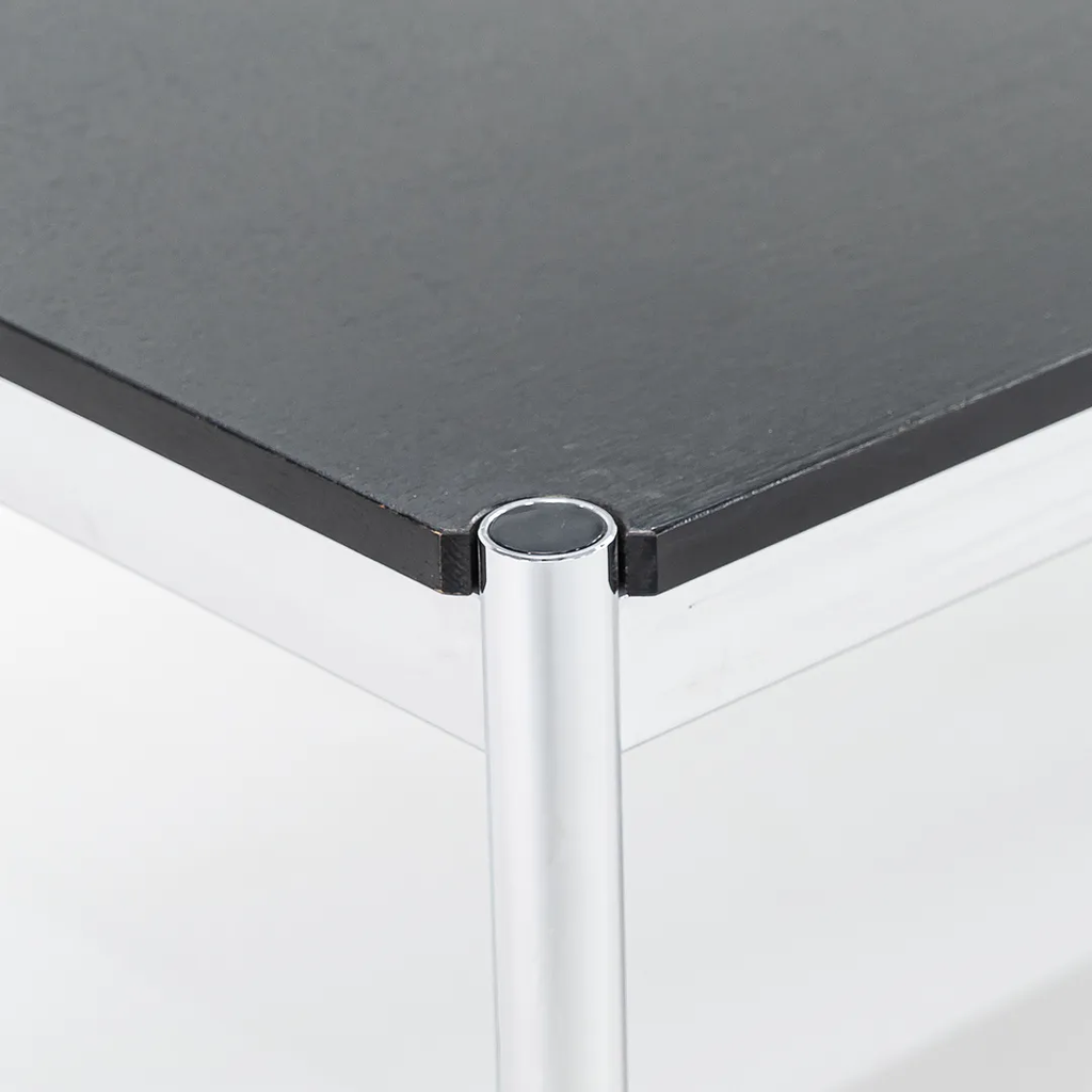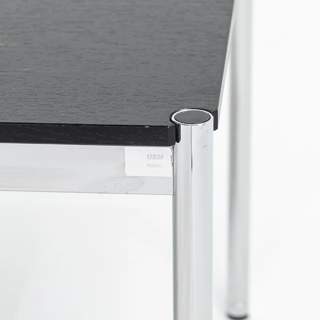 Listed for sale is a single USM Haller T79 Table / Desk, (eight are available, though they are priced individually), with polished chrome framing and an ebonized wood top. We guarantee this to be an authentic USM Haller piece made in Switzerland. As authorized USM Haller Dealers, we only sell authentic products. Condition is good with some wear from use. See Photos.
