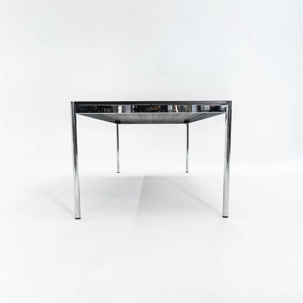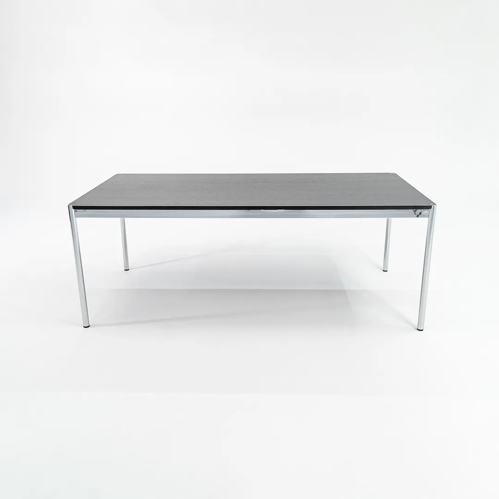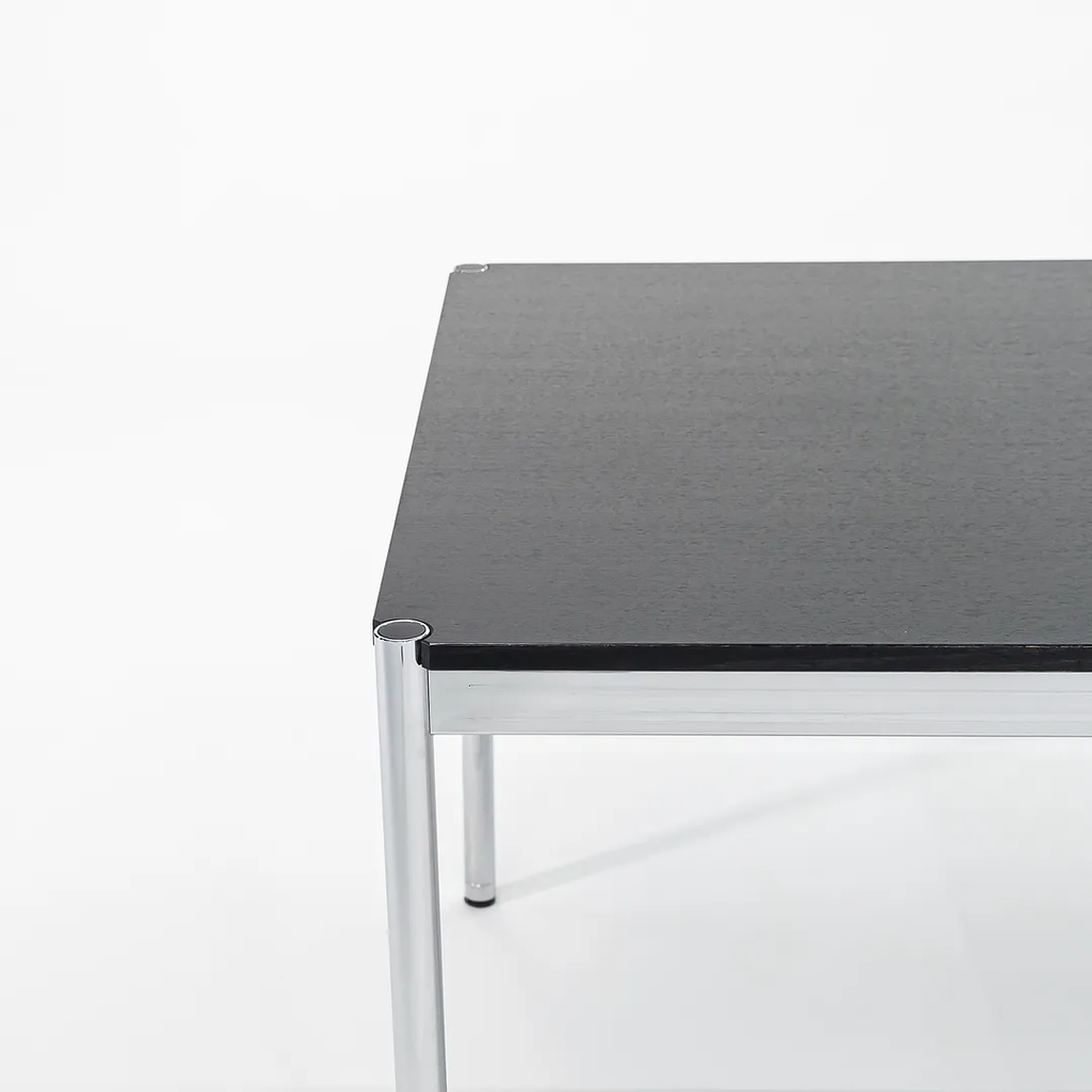 Listed for sale is a single USM Haller T79 Table / Desk, (eight are available, though they are priced individually), with polished chrome framing and an ebonized wood top. We guarantee this to be an authentic USM Haller piece made in Switzerland. As authorized USM Haller Dealers, we only sell authentic products. Condition is good with some wear from use. See Photos.