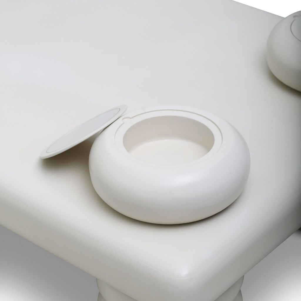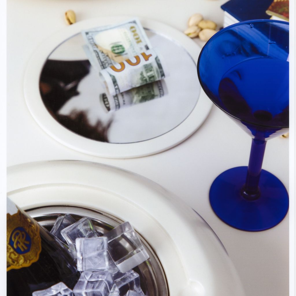 The Taarof Table is an opulent modular cocktail table inspired by Taarof, a Persian tradition of etiquette and generosity. Available custom leg inserts include fruit basket, pewter ashtray, and/or double-walled ice bucket.