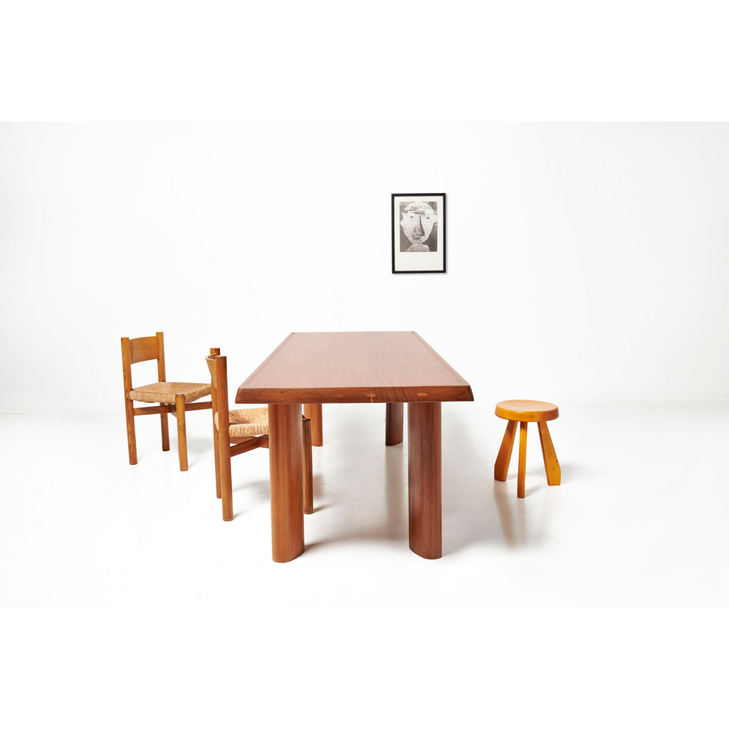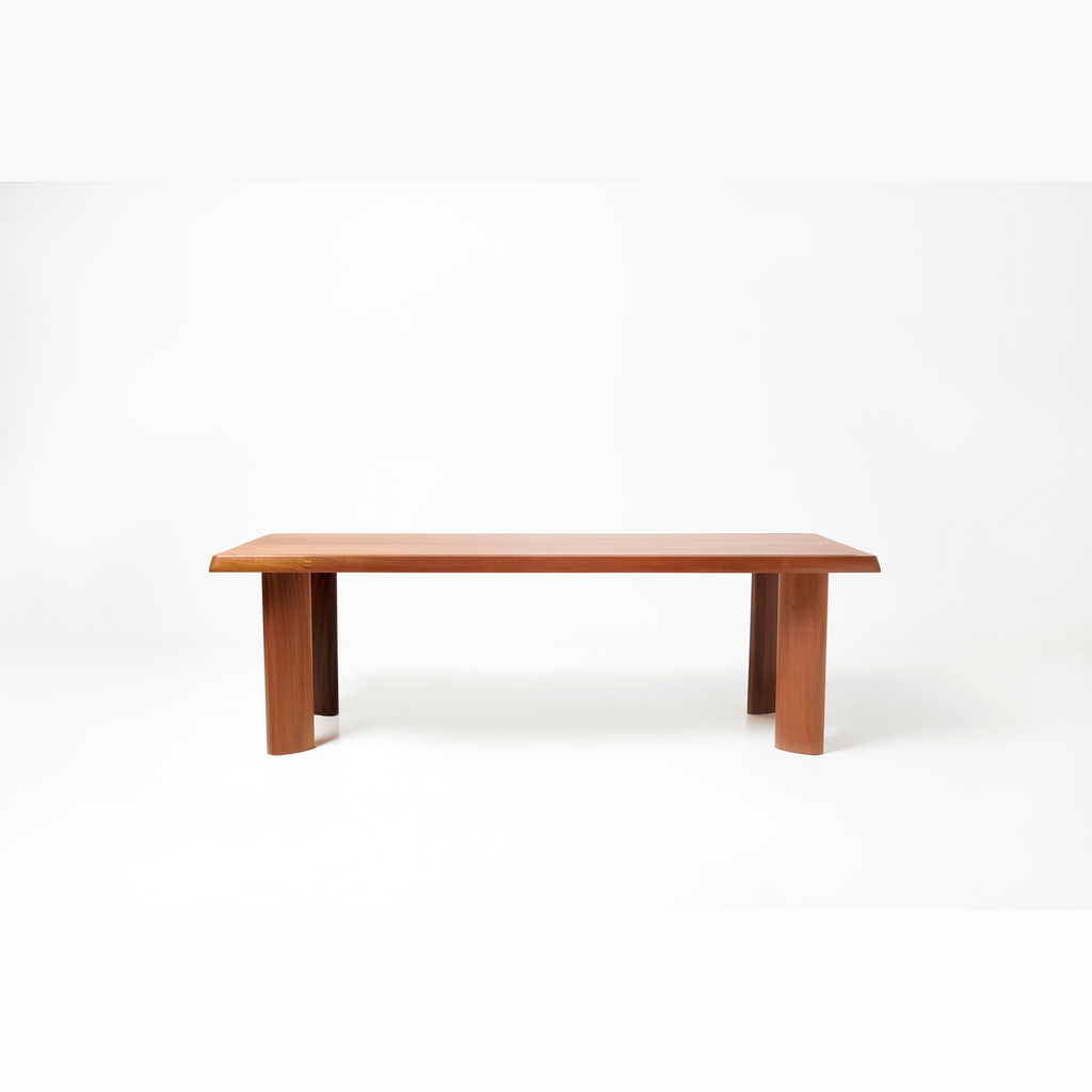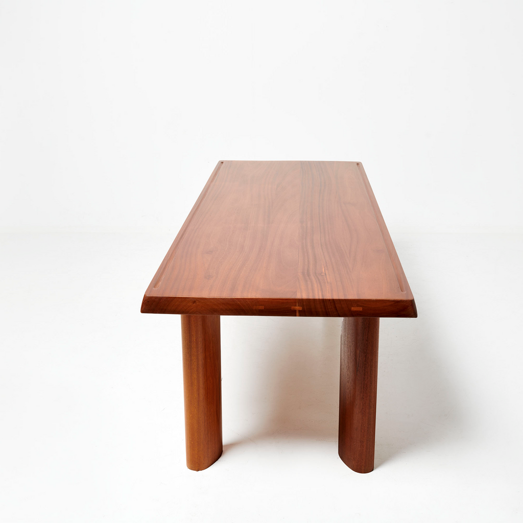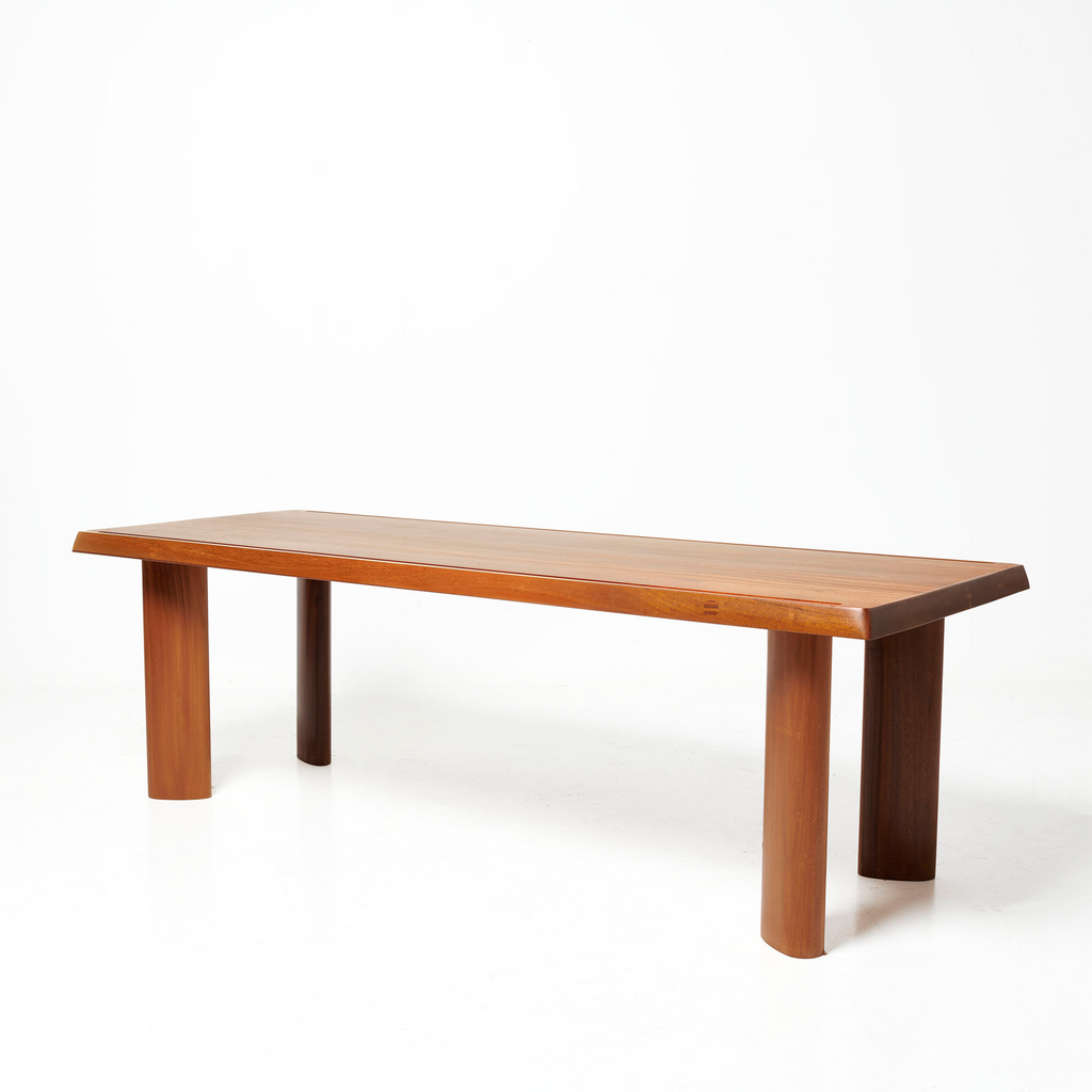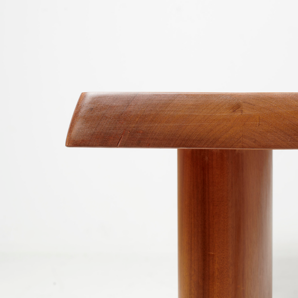 Rectangular in shape, the mahogany top rests on four ovoid feet.
