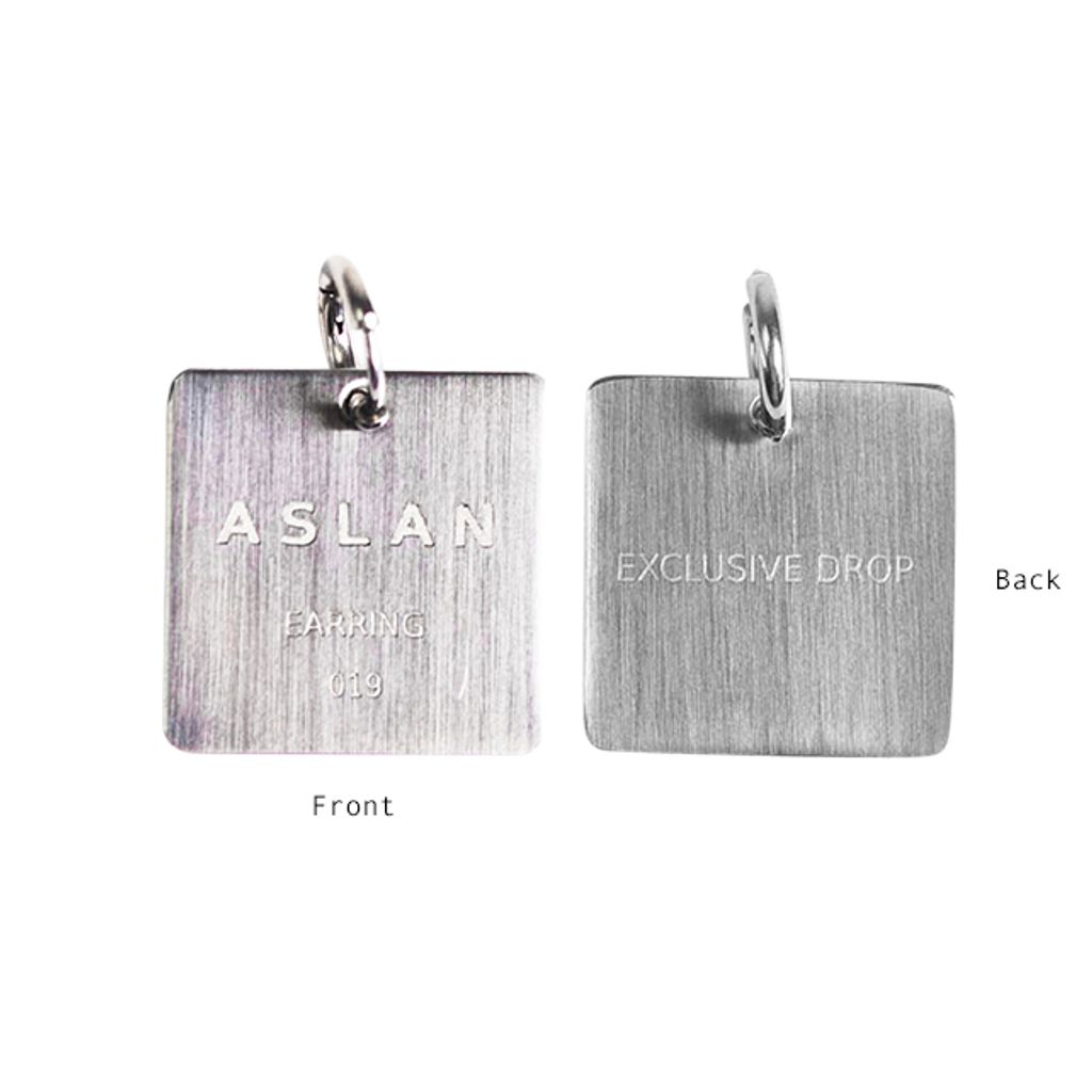 Tag Earring 019 features engraved stainless steel monochromatic tag.