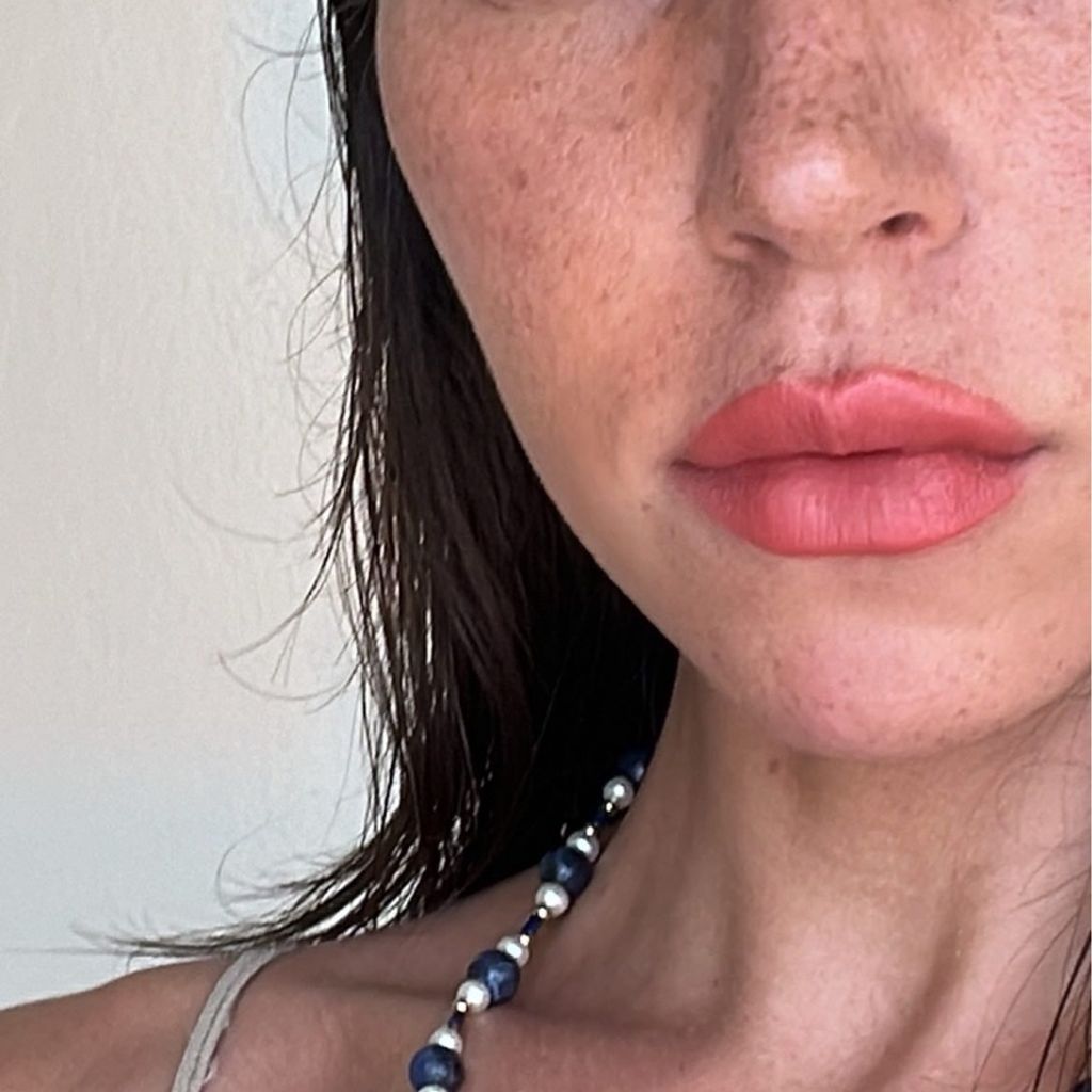 Made out of: natural raw aquamarine, polished lapis lazuli, 18k gold-plated brass beads and clasp.
