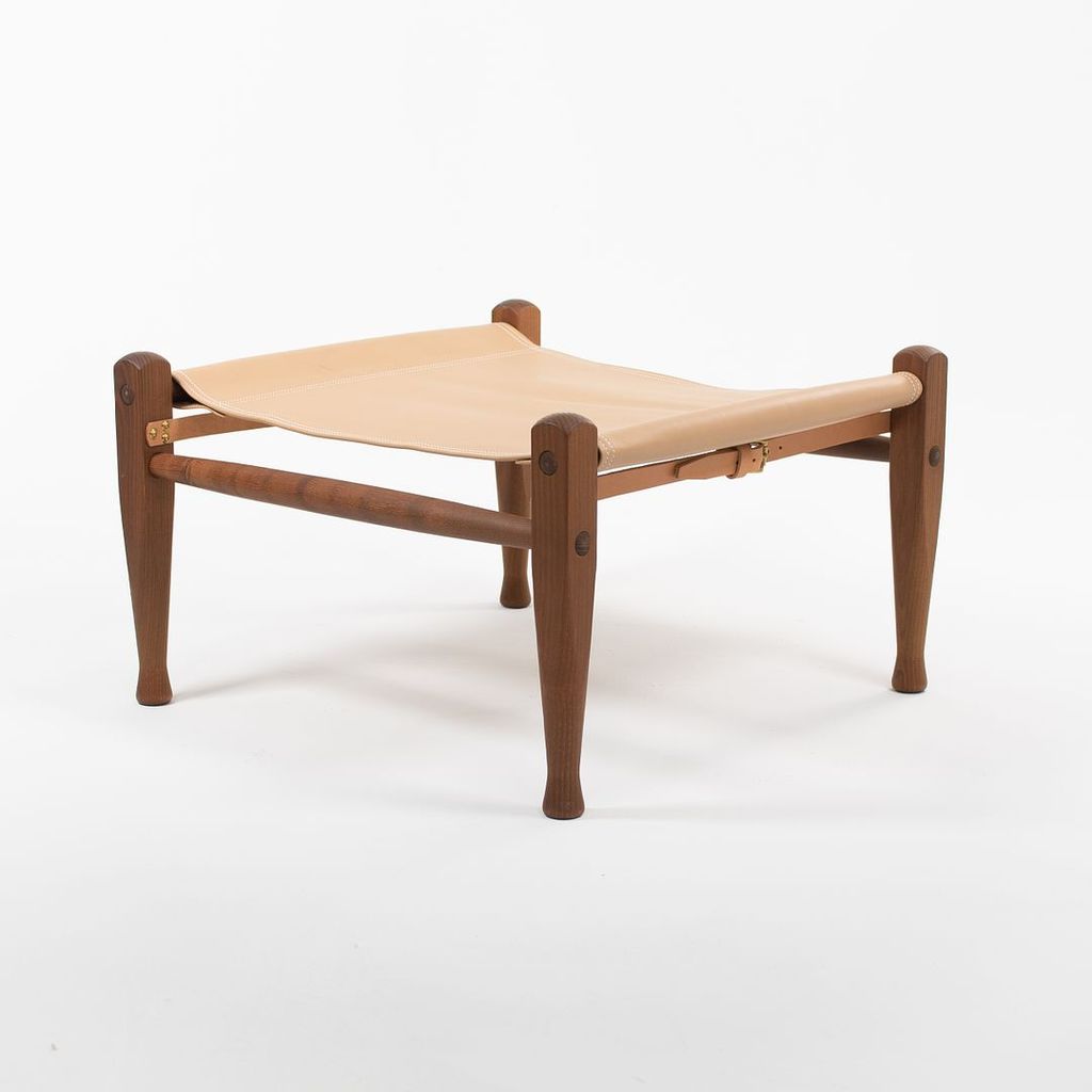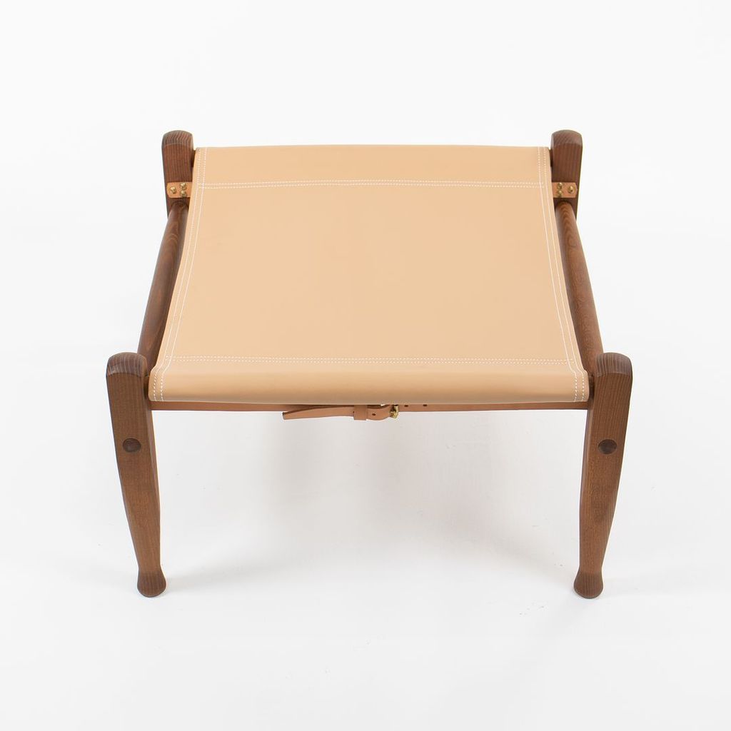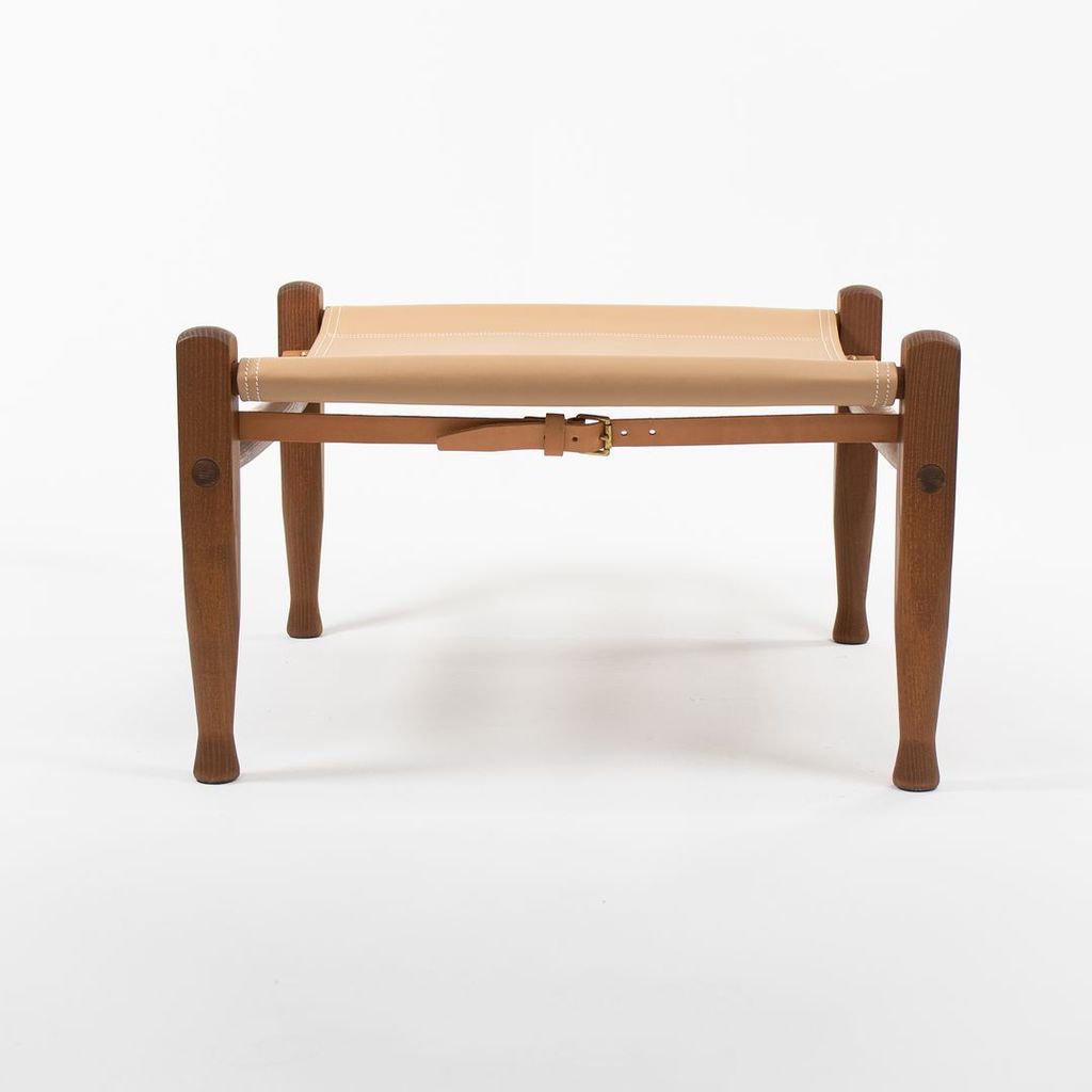 Listed for sale is a KK97170 Safari Footstool with a solid smoked ash frame and tan leather seat. The footstool, designed by Esben Klint and produced by Carl Hansen & Son in Denmark, was produced circa 2021 and is guaranteed as authentic. Condition is excellent with minimal wear. See photos. The stool came directly from Carl Hansen and was likely never used in a home or office setting.