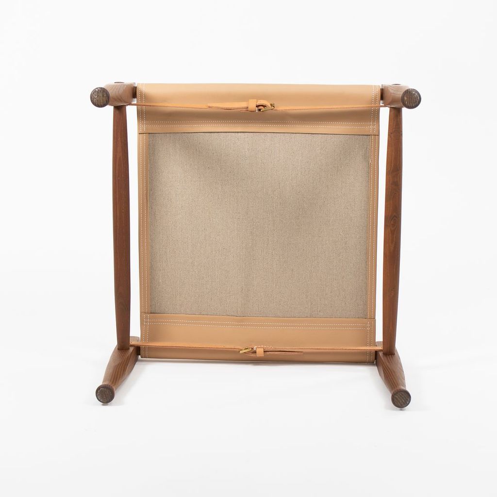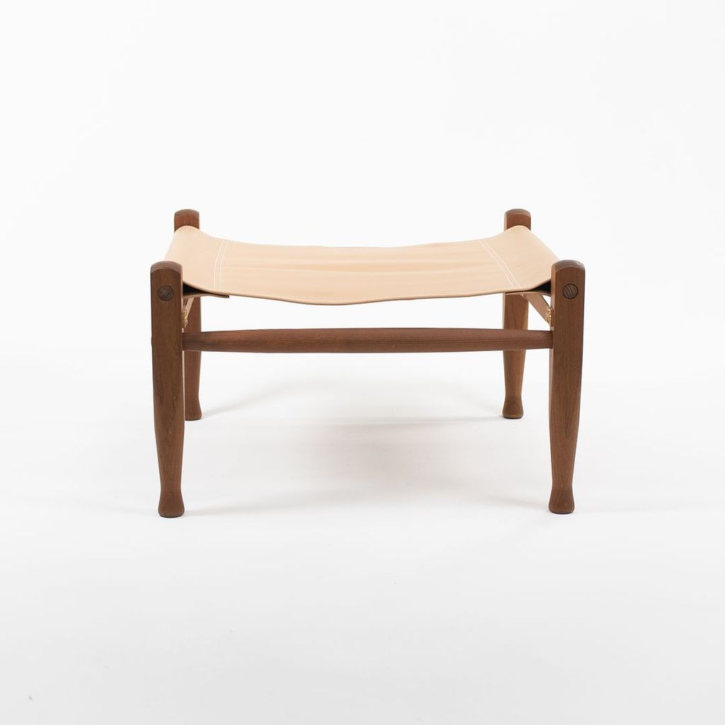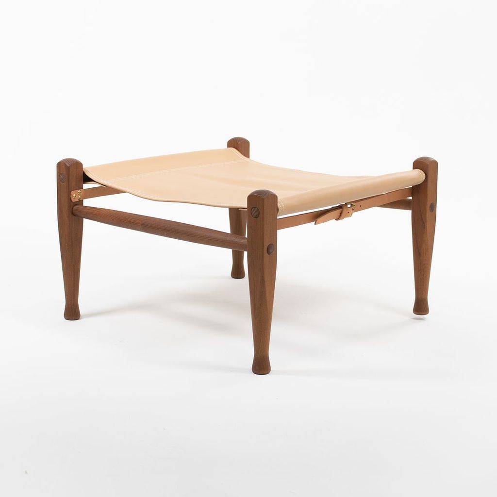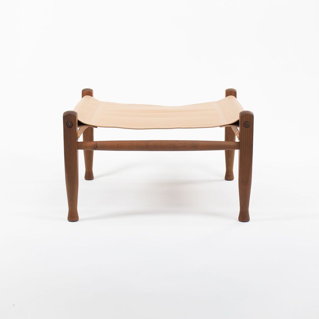 Listed for sale is a KK97170 Safari Footstool with a solid smoked ash frame and tan leather seat. The footstool, designed by Esben Klint and produced by Carl Hansen & Son in Denmark, was produced circa 2021 and is guaranteed as authentic. Condition is excellent with minimal wear. See photos. The stool came directly from Carl Hansen and was likely never used in a home or office setting.
