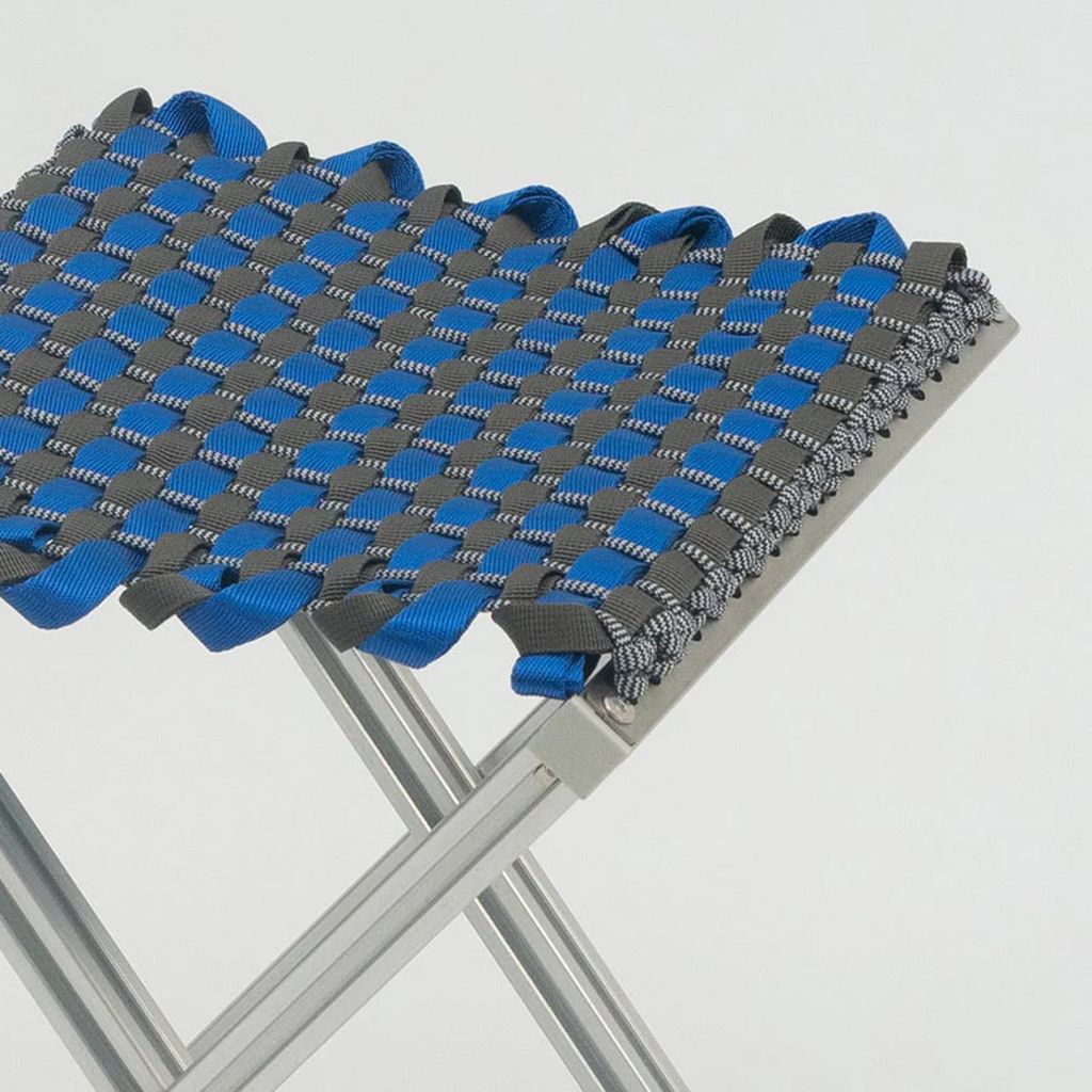 Designed and crafted by AMASS Studio and TANCHEN Studio, the MAZHA Stool is an ode to the traditional 马扎 (mǎ zhá) stool. Inspired by scenes of the elderly gathering along the streets in Shanghai, the MAZHA Stool is designed to capture the communal spirit of afternoon tea in the city. Its compact and portable build makes it convenient to set down wherever it suits you: a shady alleyway, a picnic, or a beach. Made out of a foldable aluminium frame with a seatpad handwoven from nylon ribbon and rope, ST##L utilises everyday, common materials to create a modern reinterpretation of this adaptable and enduring Chinese social practice.