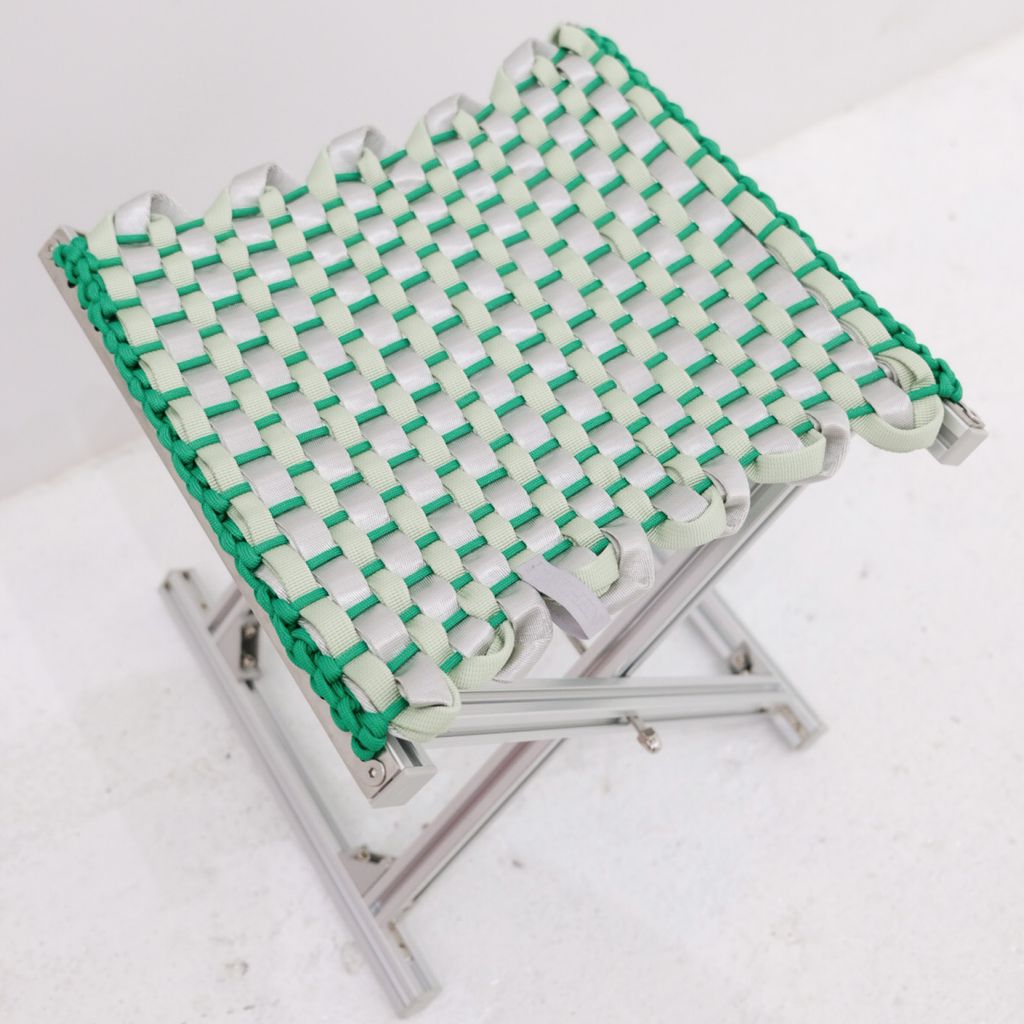 Designed and crafted by AMASS Studio and TANCHEN Studio, the MAZHA Stool is an ode to the traditional 马扎 (mǎ zhá) stool. Inspired by scenes of the elderly gathering along the streets in Shanghai, the MAZHA Stool is designed to capture the communal spirit of afternoon tea in the city. Its compact and portable build makes it convenient to set down wherever it suits you: a shady alleyway, a picnic, or a beach. Made out of a foldable aluminium frame with a seatpad handwoven from nylon ribbon and rope, ST##L utilises everyday, common materials to create a modern reinterpretation of this adaptable and enduring Chinese social practice.
