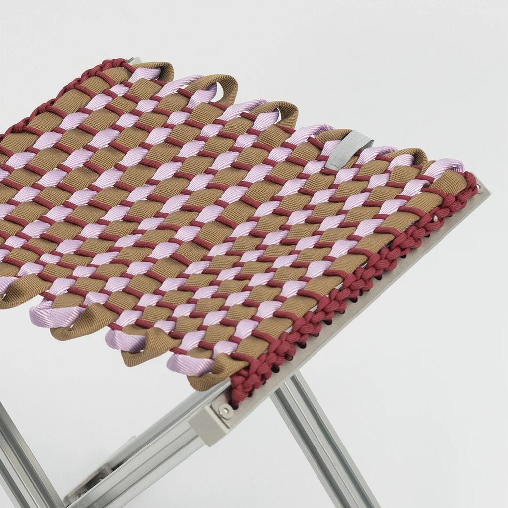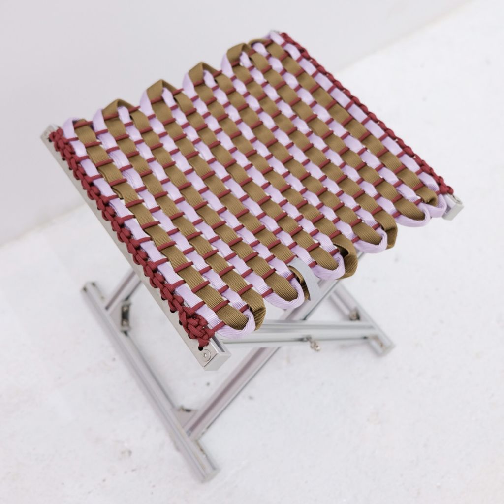 Designed and crafted by AMASS Studio and TANCHEN Studio, the MAZHA Stool is an ode to the traditional 马扎 (mǎ zhá) stool. Inspired by scenes of the elderly gathering along the streets in Shanghai, the MAZHA Stool is designed to capture the communal spirit of afternoon tea in the city. Its compact and portable build makes it convenient to set down wherever it suits you: a shady alleyway, a picnic, or a beach. Made out of a foldable aluminium frame with a seatpad handwoven from nylon ribbon and rope, ST##L utilises everyday, common materials to create a modern reinterpretation of this adaptable and enduring Chinese social practice.