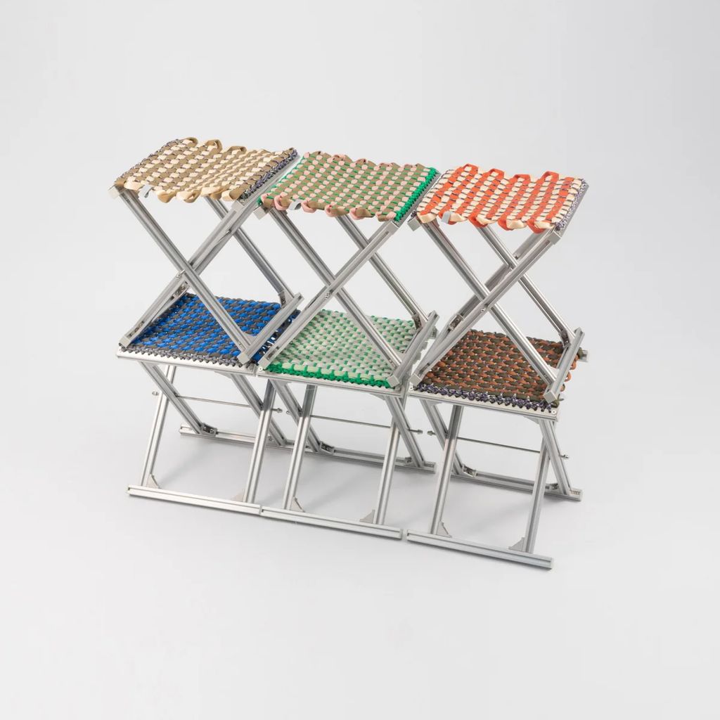 Designed and crafted by AMASS Studio and TANCHEN Studio, the MAZHA Stool is an ode to the traditional 马扎 (mǎ zhá) stool. Inspired by scenes of the elderly gathering along the streets in Shanghai, the MAZHA Stool is designed to capture the communal spirit of afternoon tea in the city. Its compact and portable build makes it convenient to set down wherever it suits you: a shady alleyway, a picnic, or a beach. Made out of a foldable aluminium frame with a seatpad handwoven from nylon ribbon and rope, ST##L utilises everyday, common materials to create a modern reinterpretation of this adaptable and enduring Chinese social practice.
