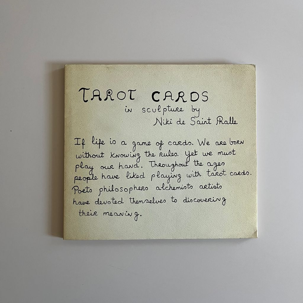 This specific book was designed and produced by Fausta Squatriti, in collaboration with Niki de Saint Phalle on the occasion of the first presentation of her work on the tarot cards.