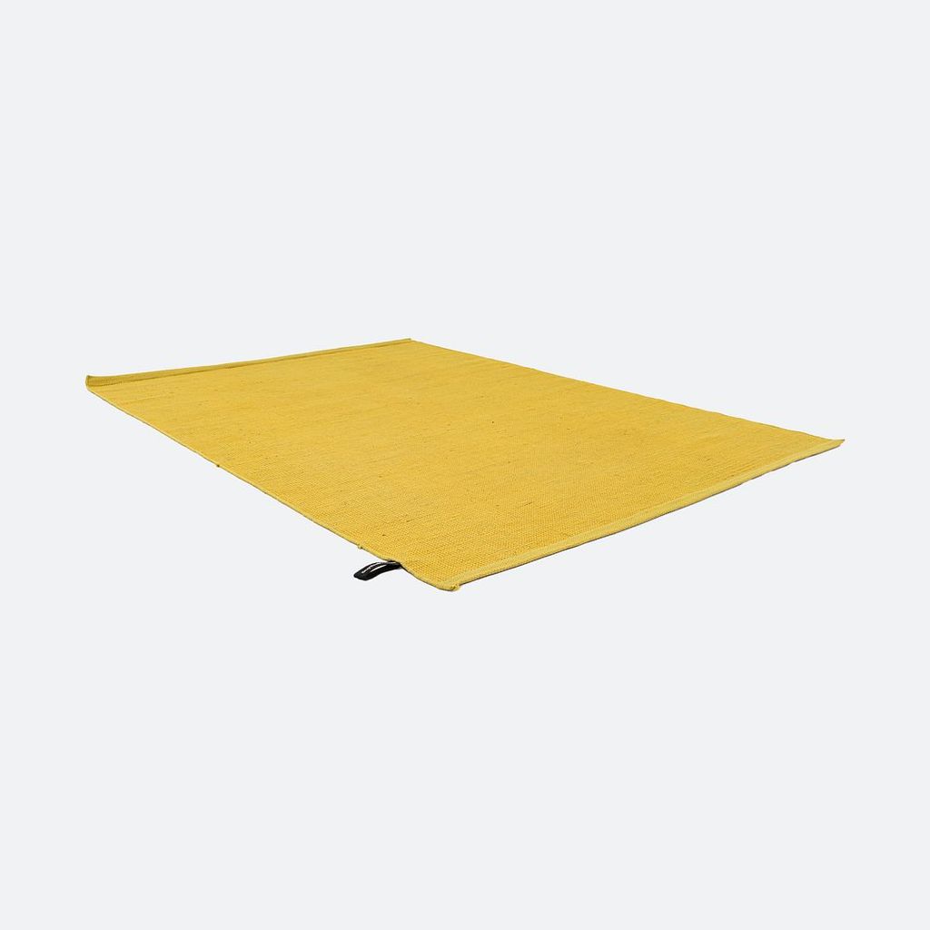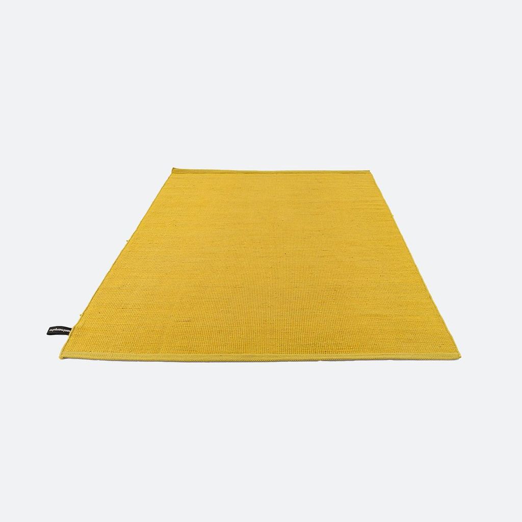 This is a Tatami Rug hand loomed with New Zealand wool and jute in a shade of yellow. The rug was designed by Nani Marquina and Ariadna Miquel and produced by Nanimarquina in India. It dates to circa 2022 and is guaranteed as authentic. Condition is very good to excellent. See photos. This came directly from Nanimarquina and was previously a showroom display model.
