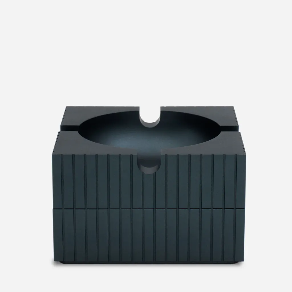 The Tecnica Ashtray and catch-all is crafted from a single block of aircraft-grade aluminum, precision-milled into the contours for ashes and four mounting points. The base compartment easily holds your precious items. Available in three finishes.