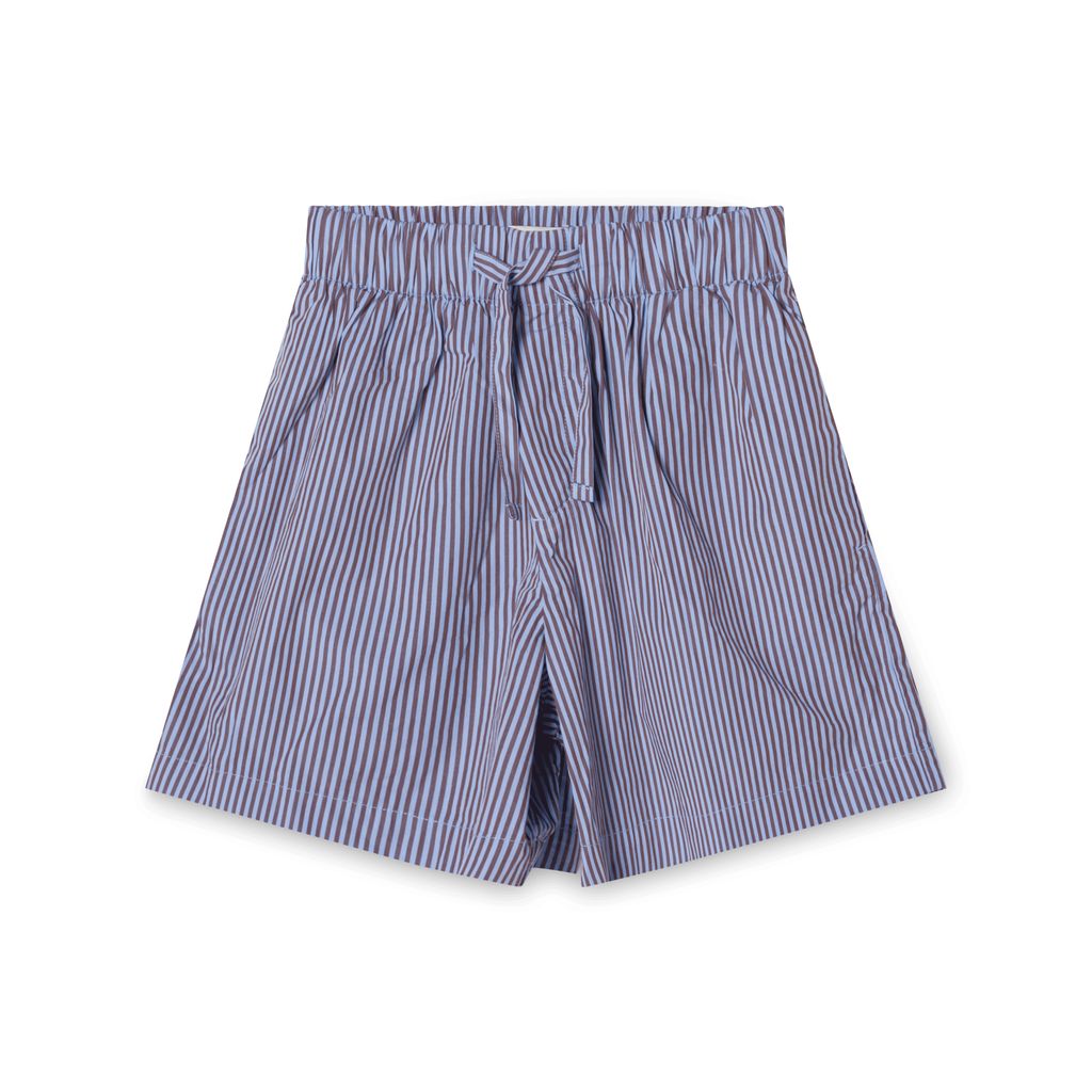 Copenhagen-based TEKLA 'embraces functional and straightforward living' through homeware and apparel made from carefully sourced materials. Crafted in Portugal from crisp organic cotton and embellished with vertical stripes, these poplin pajama shorts are cut for a relaxed fit and fasten at the waist with an elasticated drawstring.